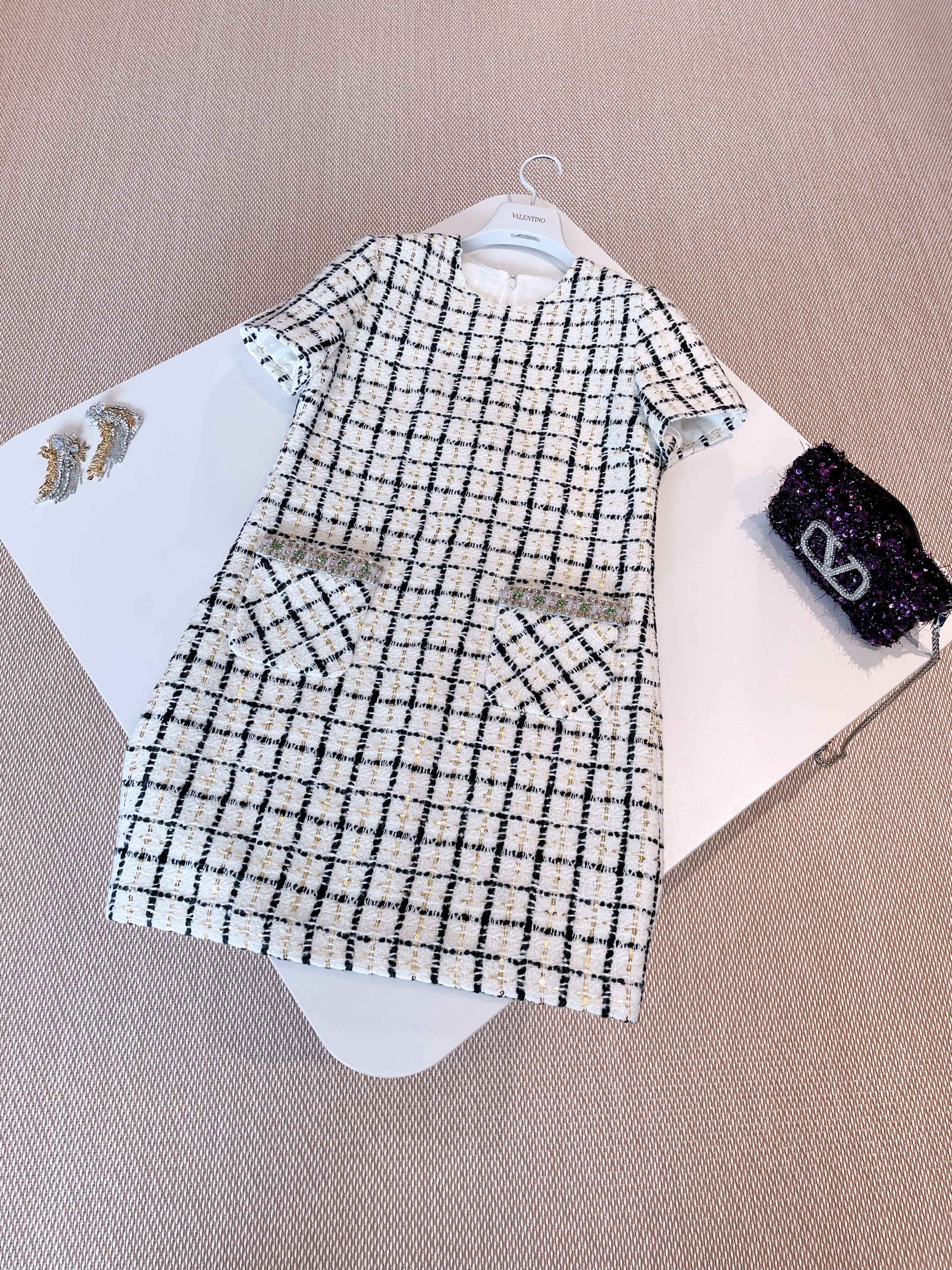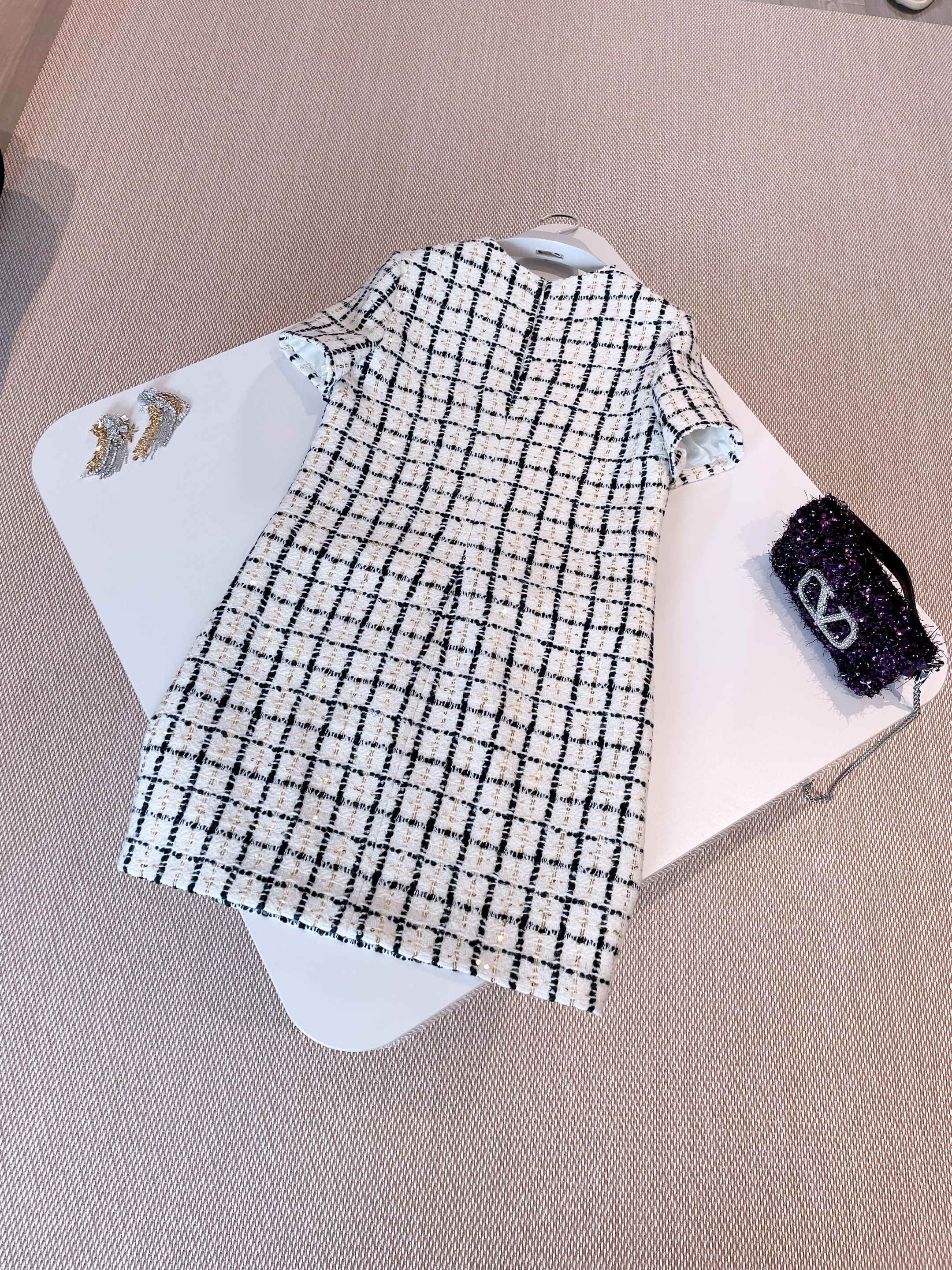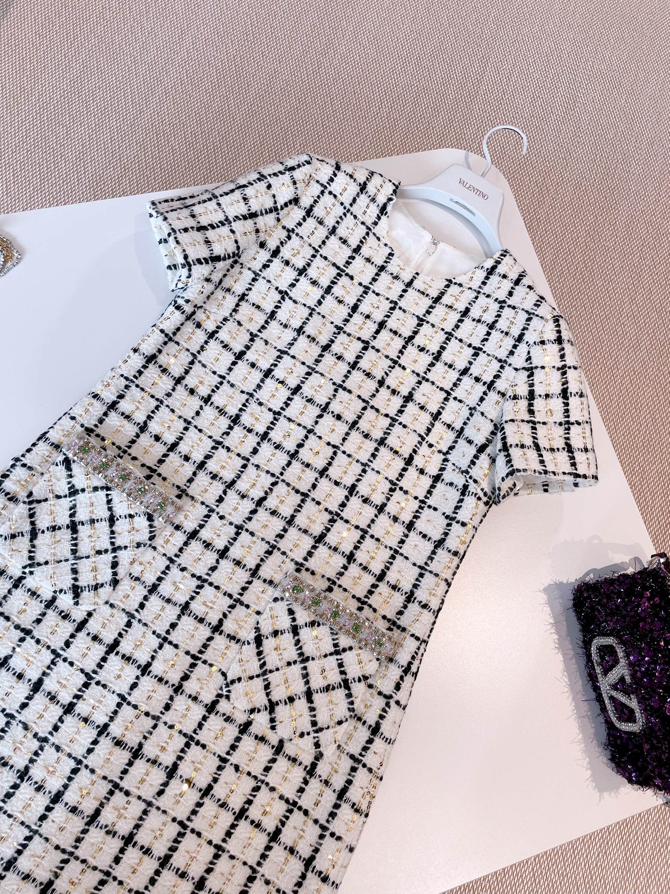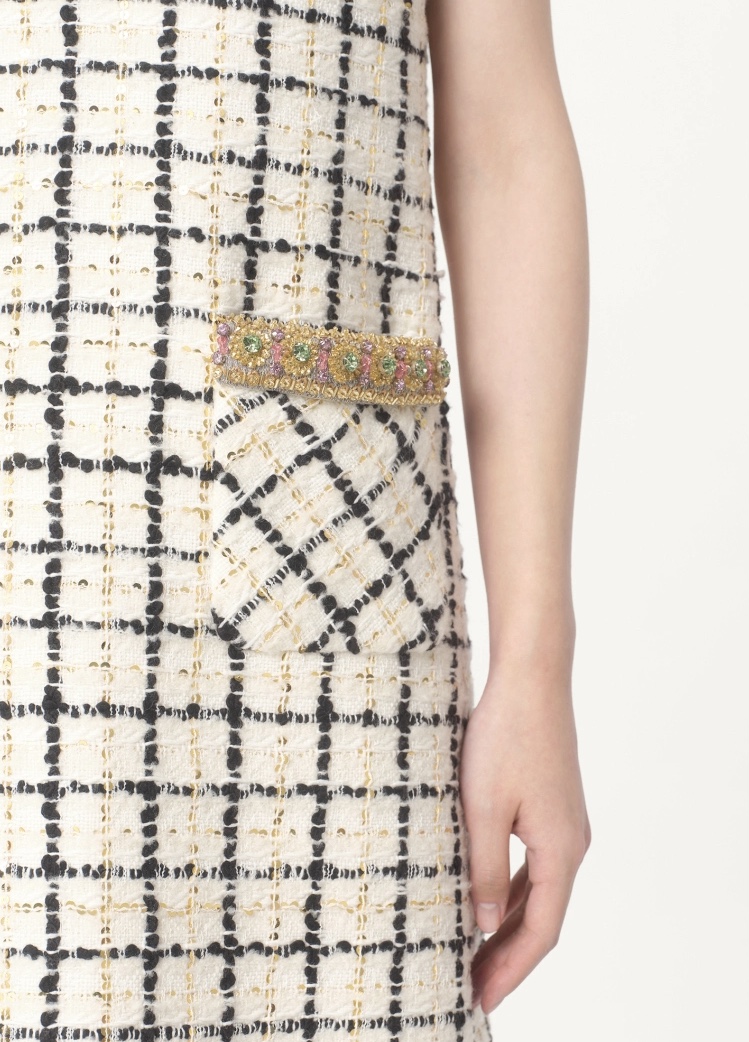 NIGO Valentino Women's Summer Tweed Check Embroidery Short Round Neck Colorblocking Dresses Ngvp #nigo1254