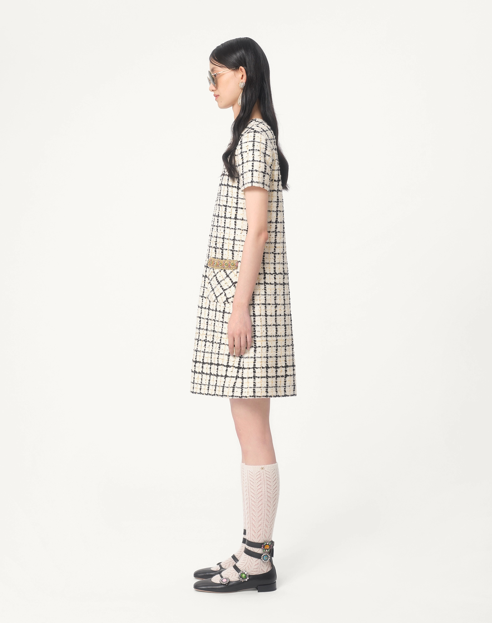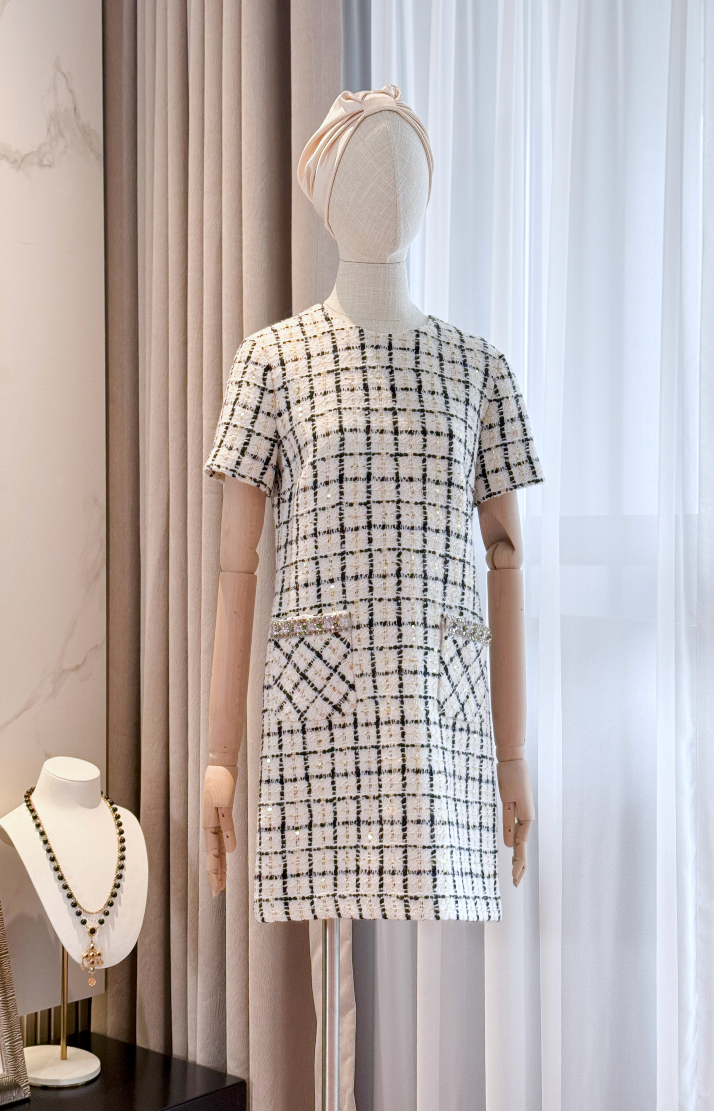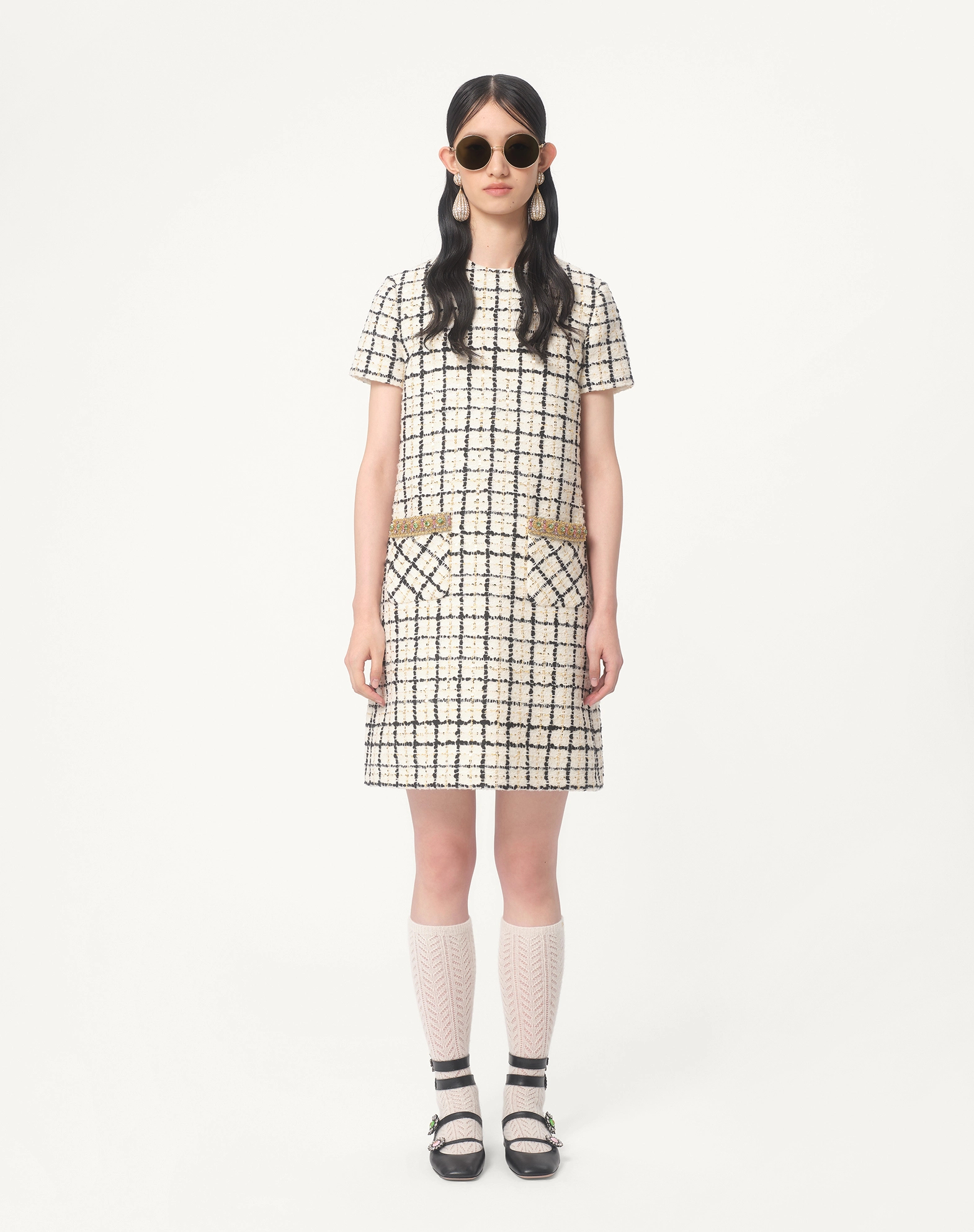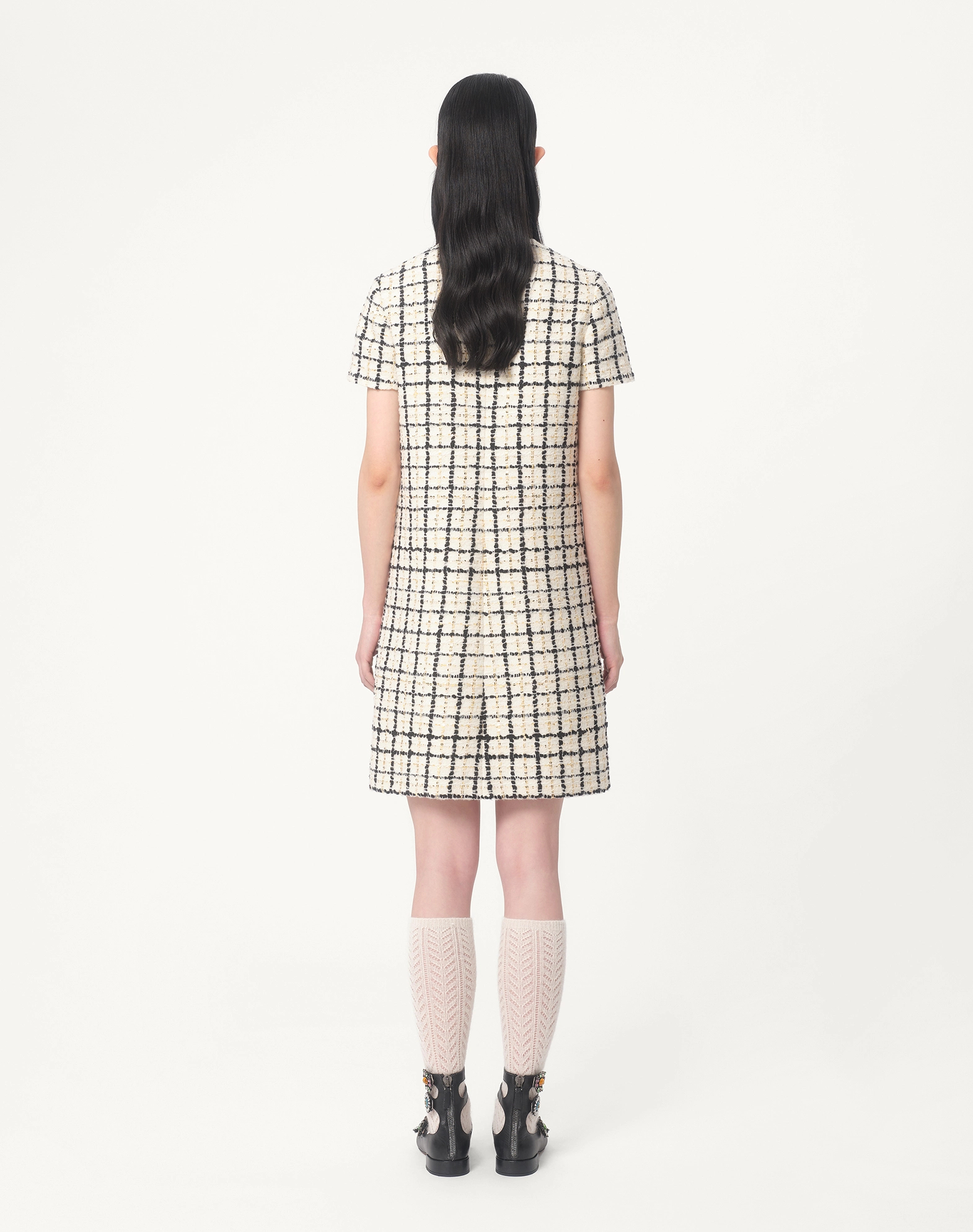 NIGO Valentino Women's Summer Tweed Check Embroidery Short Round Neck Colorblocking Dresses Ngvp #nigo1254