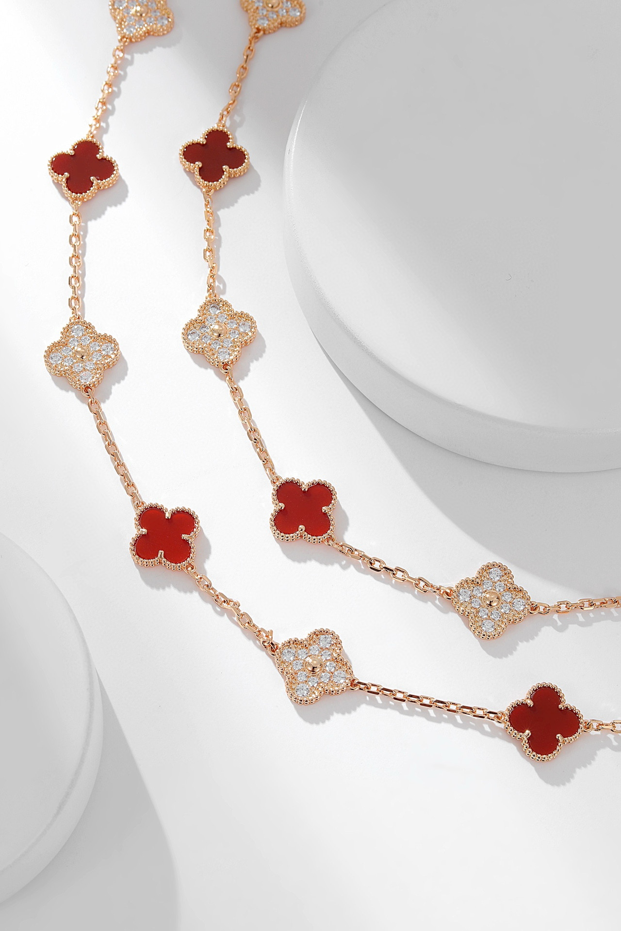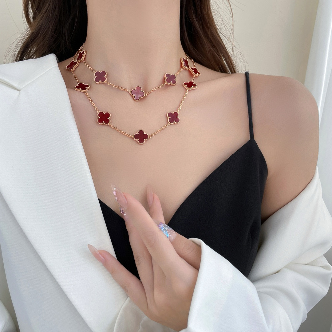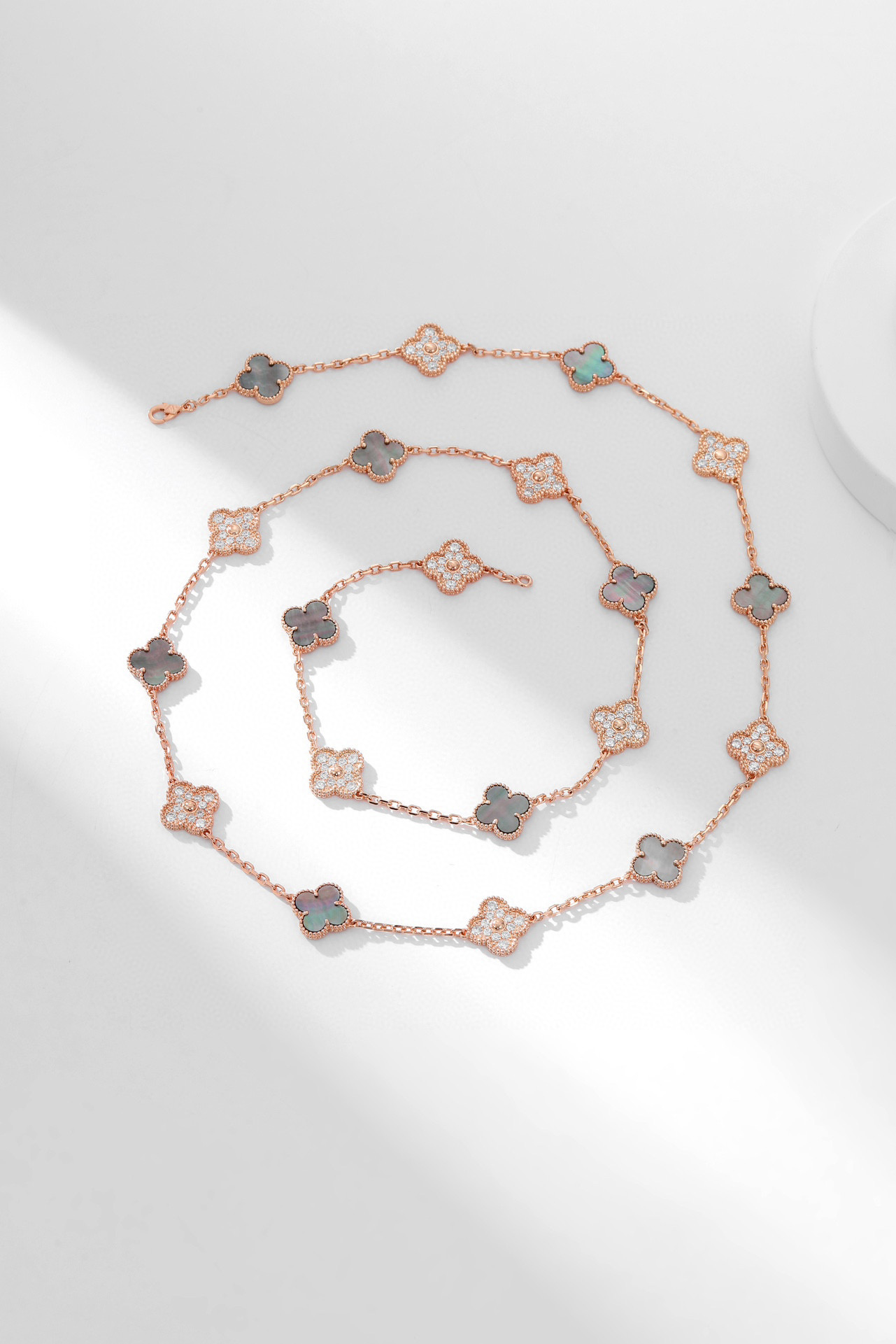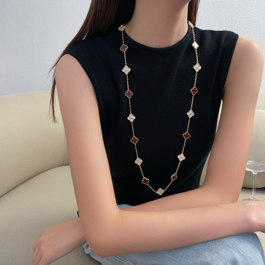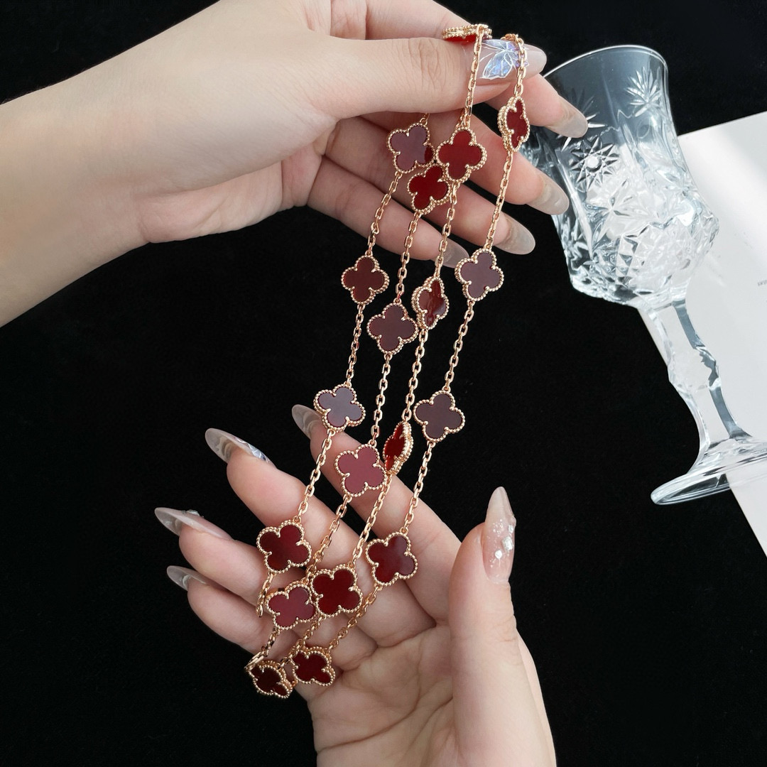NIGO Van Cleef & Arpels Alhumbra Vintage Four Seasons Twenty Flowers Chalcedony Rose Gold Necklace Double Wear Jewelry Accessories #nigo98335