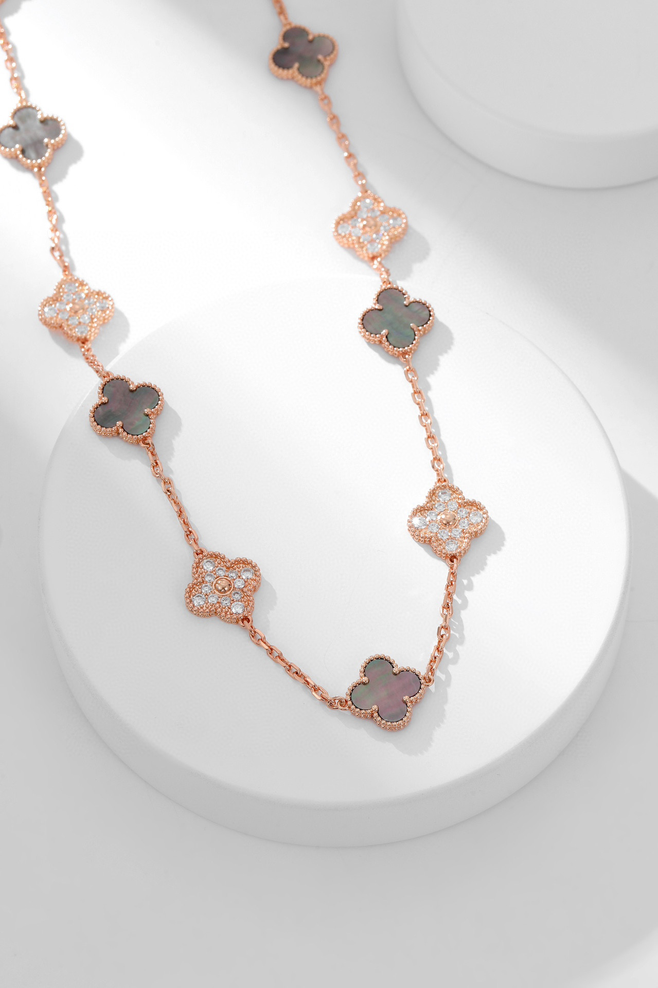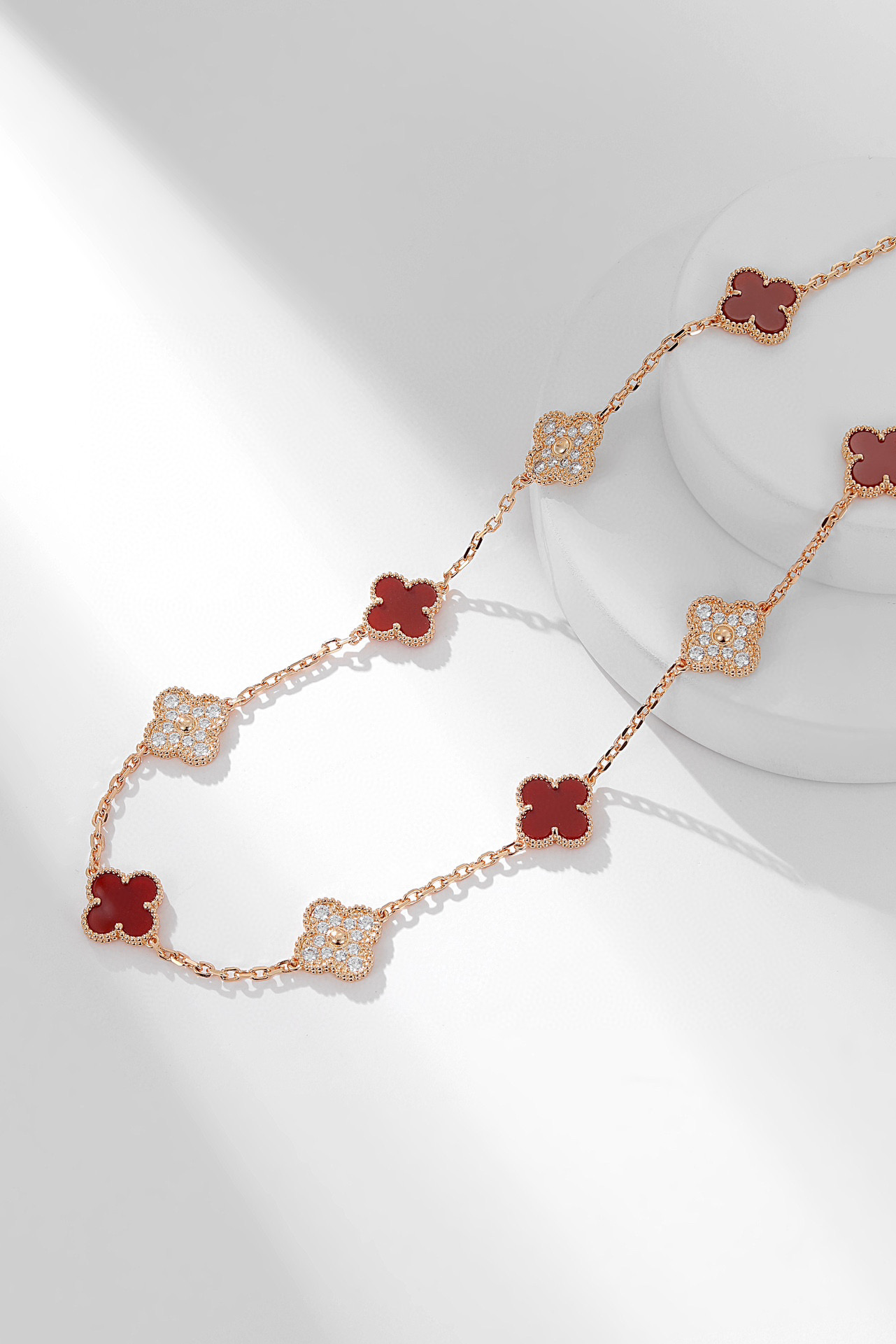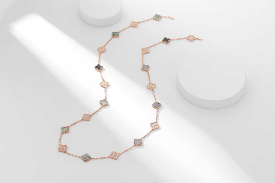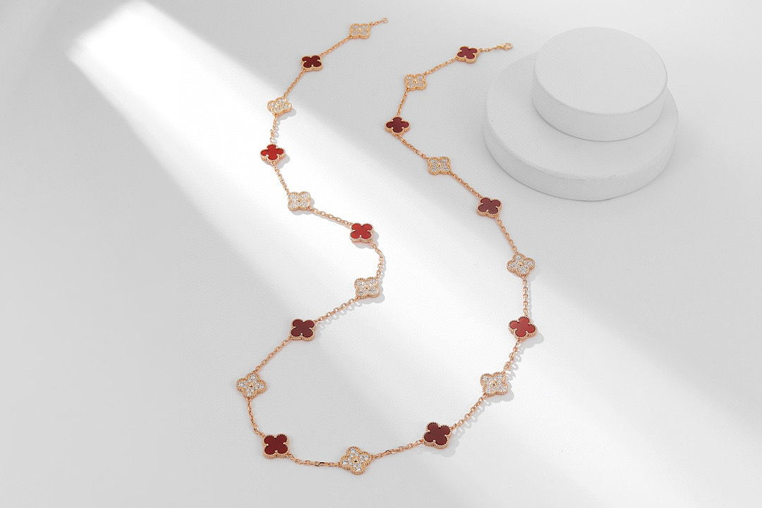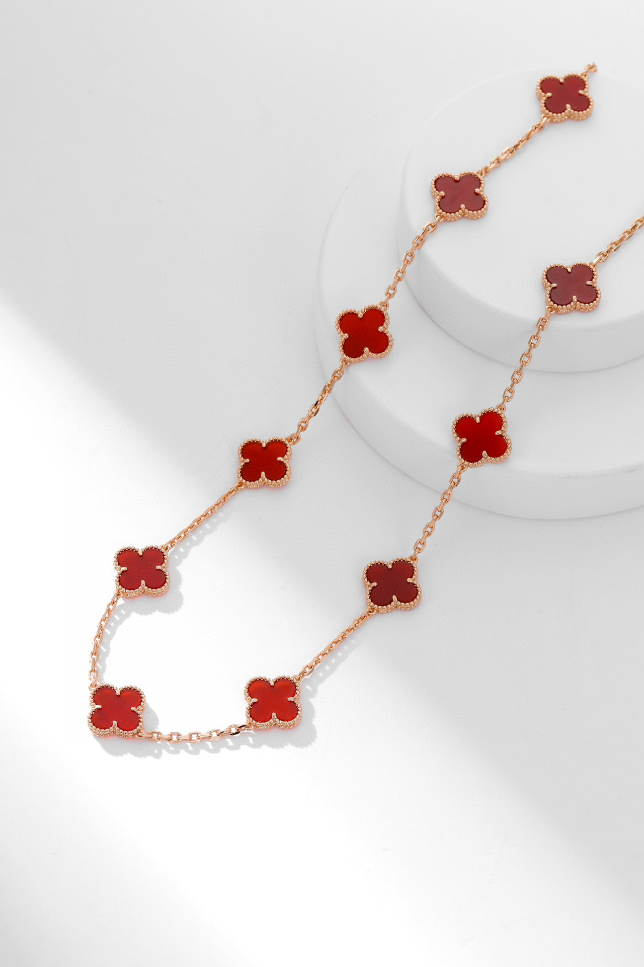 NIGO Van Cleef & Arpels Alhumbra Vintage Four Seasons Twenty Flowers Chalcedony Rose Gold Necklace Double Wear Jewelry Accessories #nigo98335