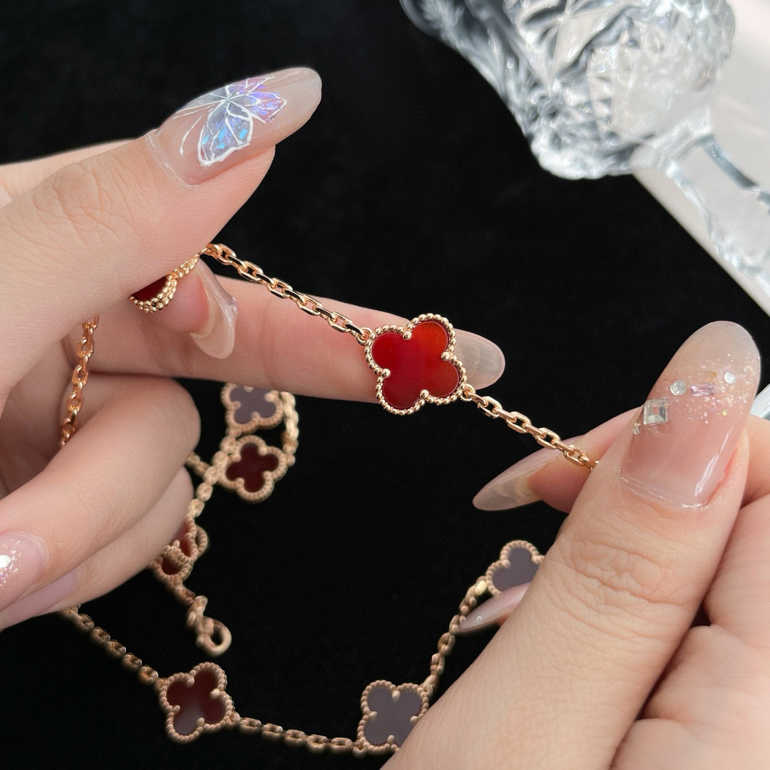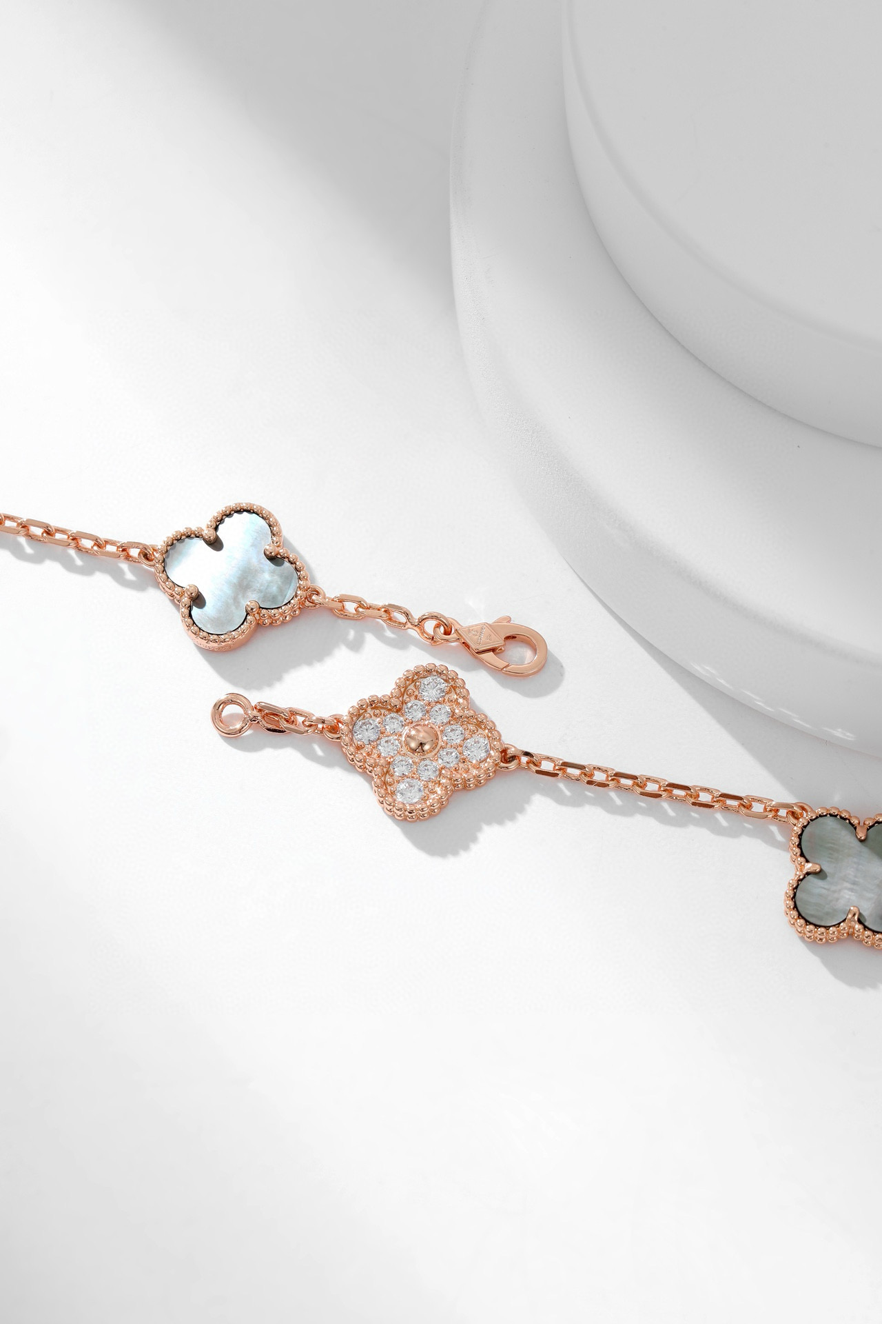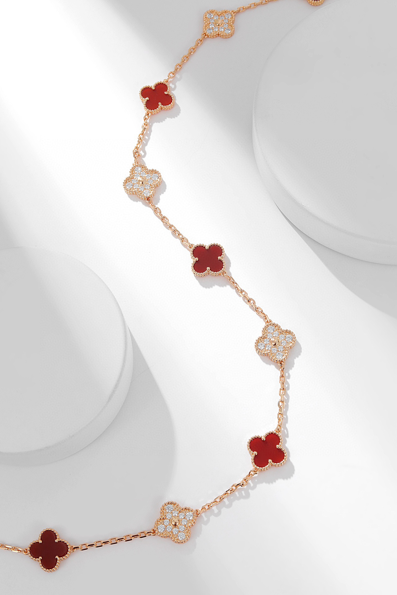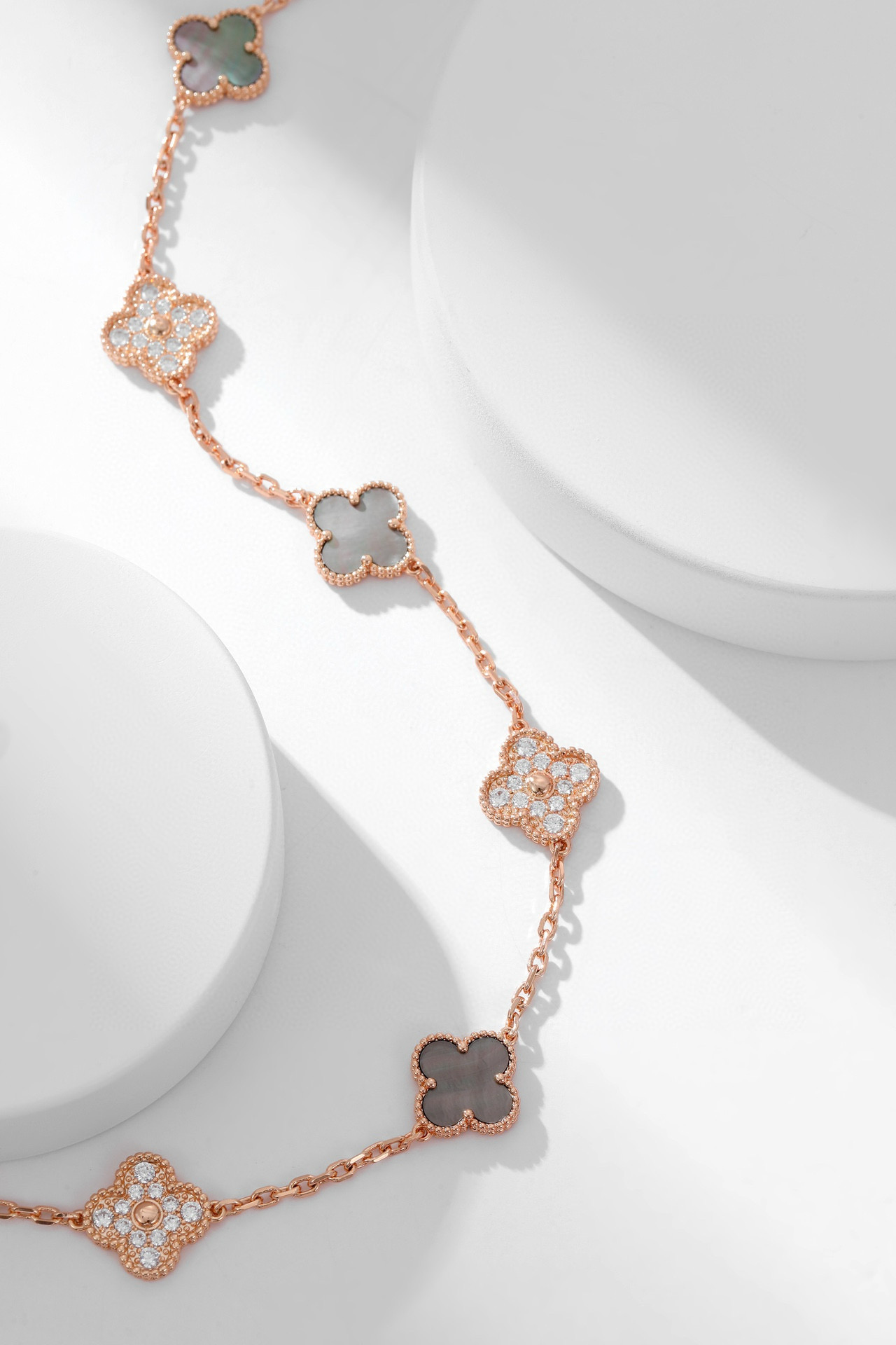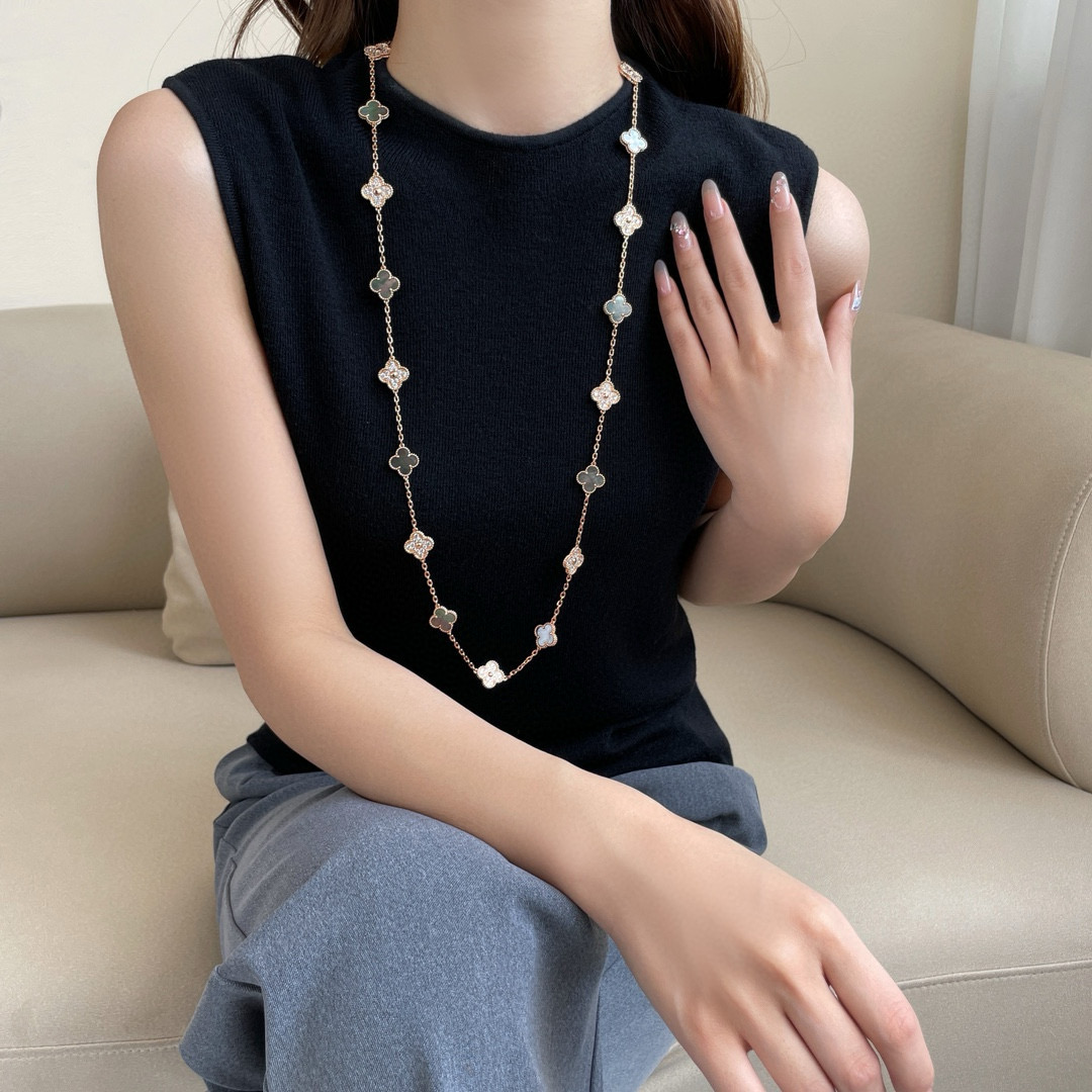 NIGO Van Cleef & Arpels Alhumbra Vintage Four Seasons Twenty Flowers Chalcedony Rose Gold Necklace Double Wear Jewelry Accessories #nigo98335