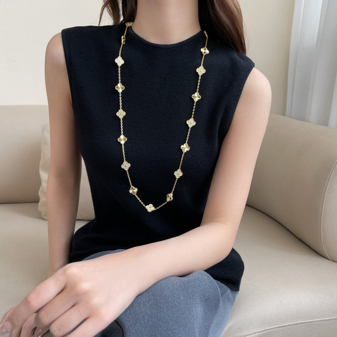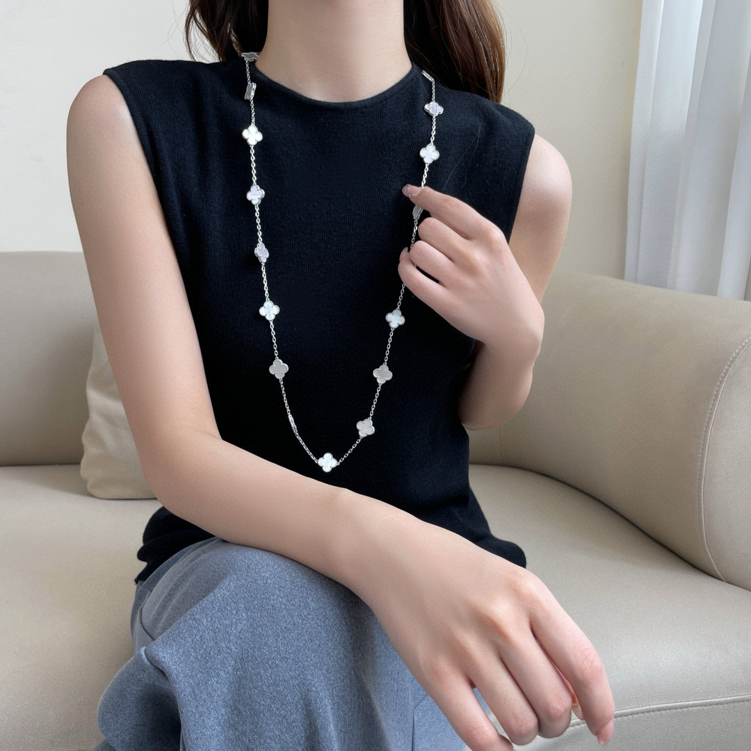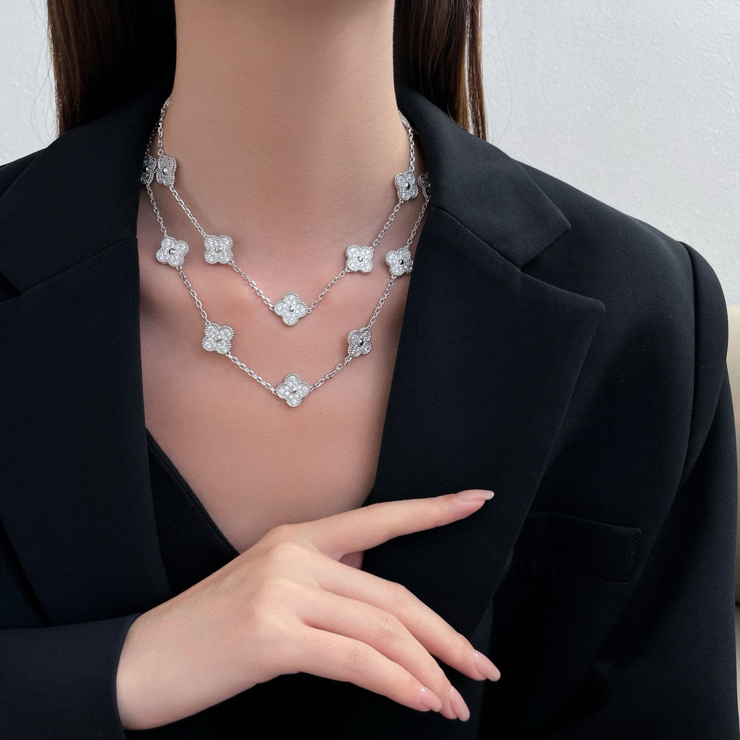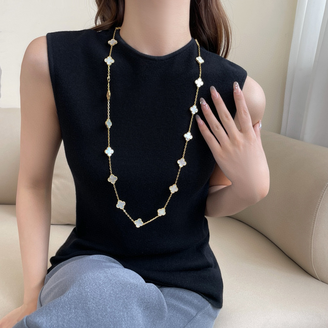 NIGO Van Cleef & Arpels Alhumbra Vintage Four Seasons Twenty Flowers Chalcedony Rose Gold Necklace Double Wear Jewelry Accessories #nigo98335