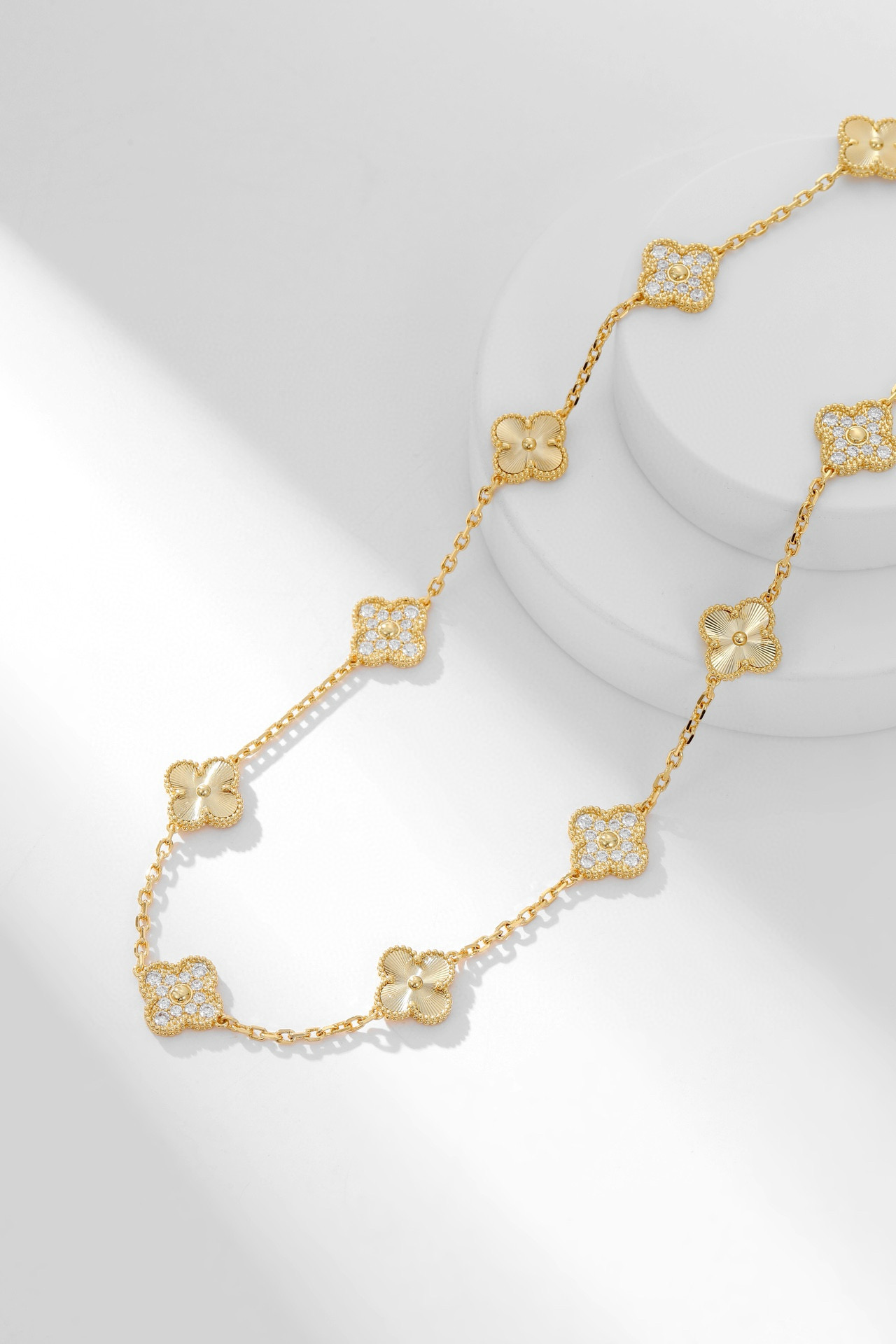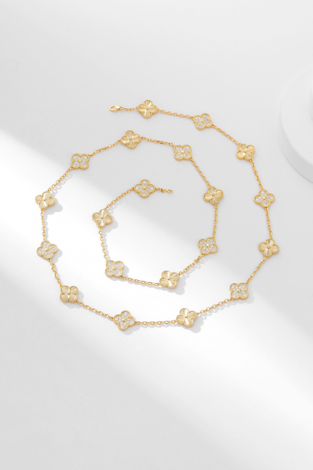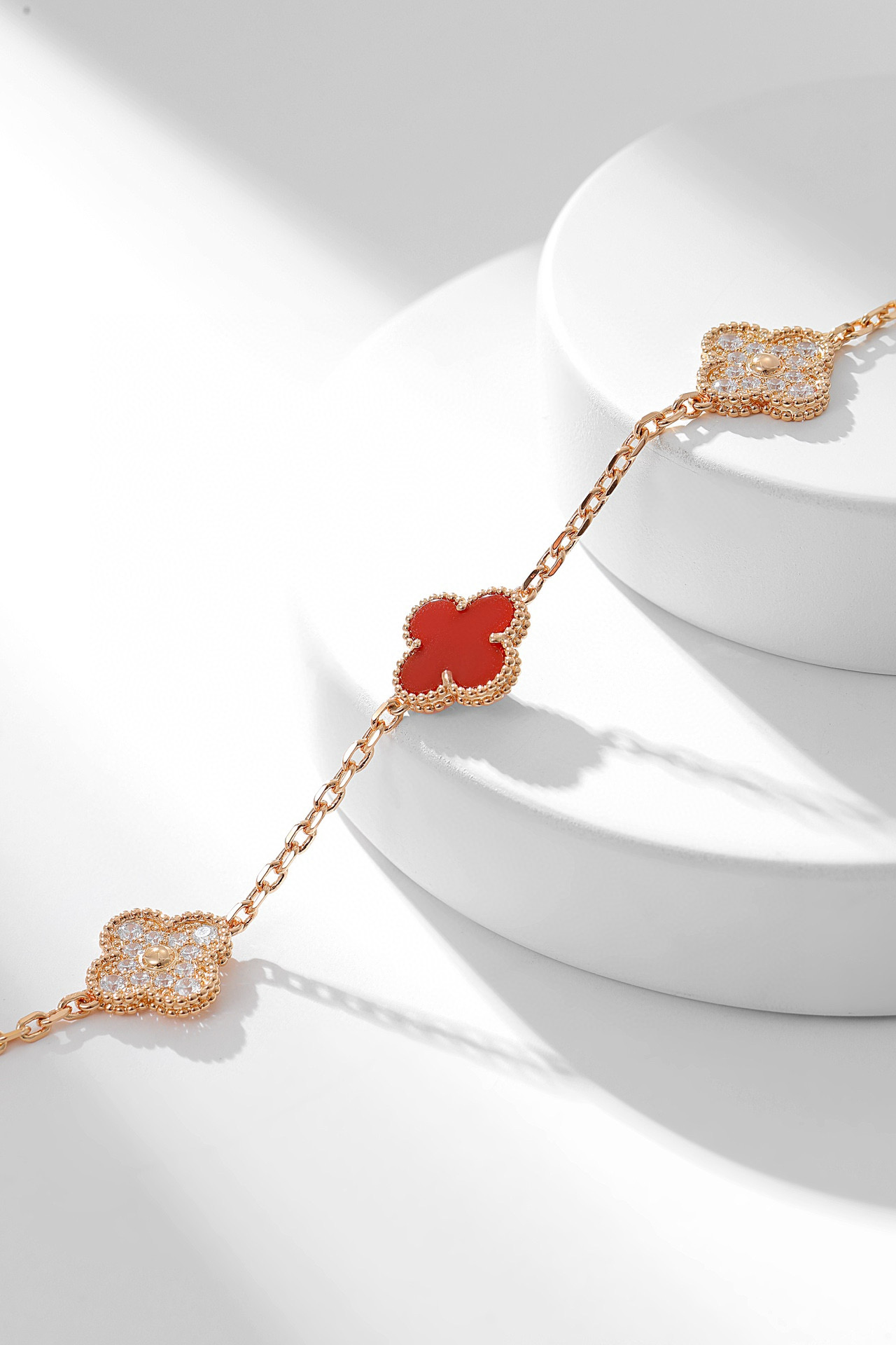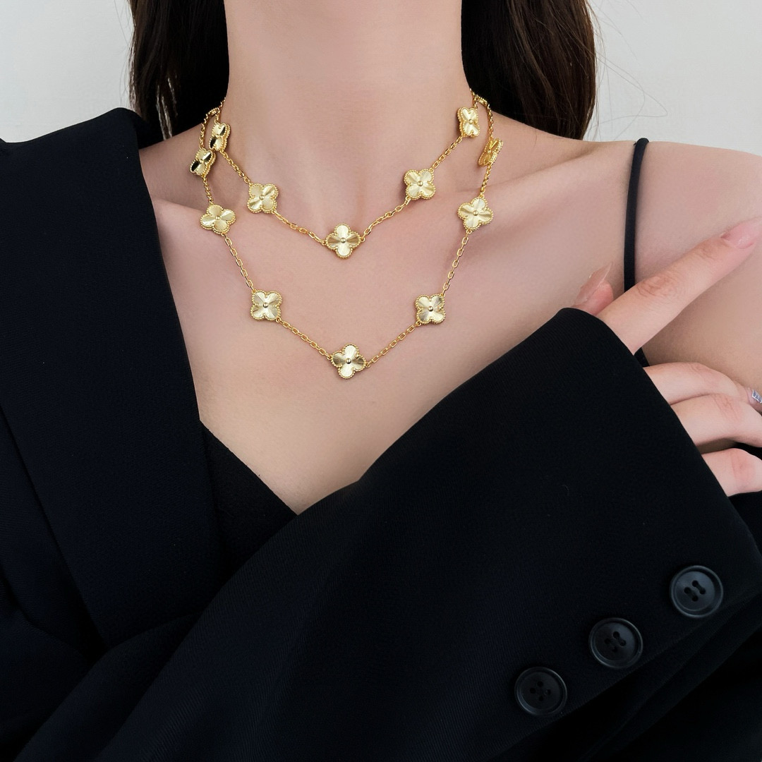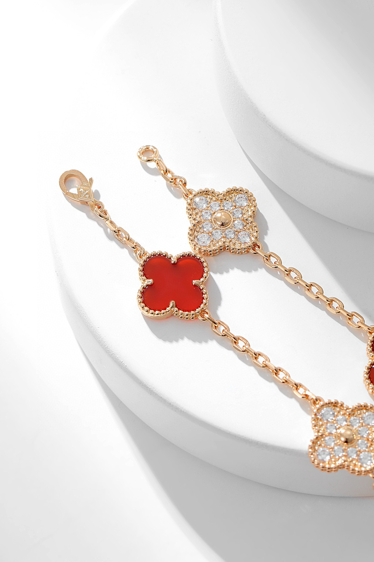 NIGO Van Cleef & Arpels Alhumbra Vintage Four Seasons Twenty Flowers Chalcedony Rose Gold Necklace Double Wear Jewelry Accessories #nigo98335