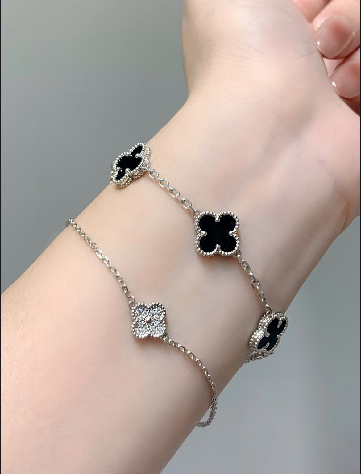 Nigo Van Cleef&arpels Five Flower Black Silver Color Matching Metal Bracelet, Pure Silver Flower Temperament, Luxurious Jewelry Accessories #nigo74456