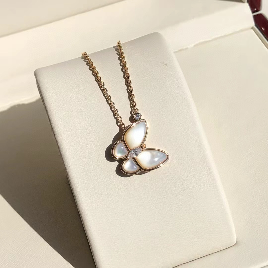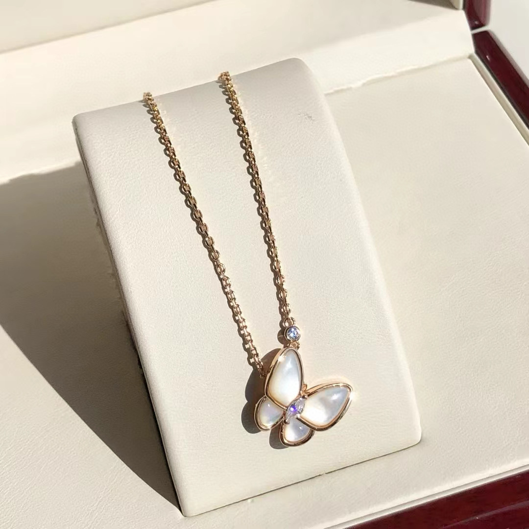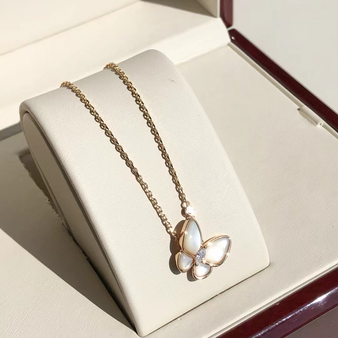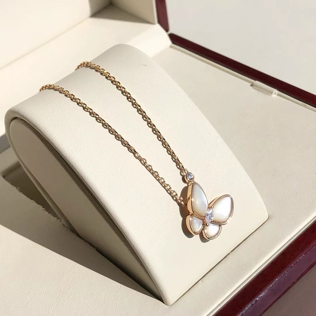 NIGO Van Cleef&Arpels Two Butterfly Women's Solid Color Butterfly Shape Diamonds Mother of Pearl Necklace Jewelry #nigo75539