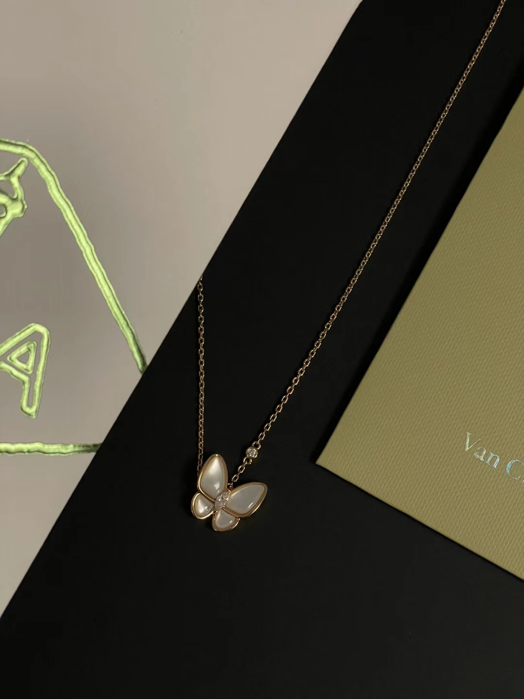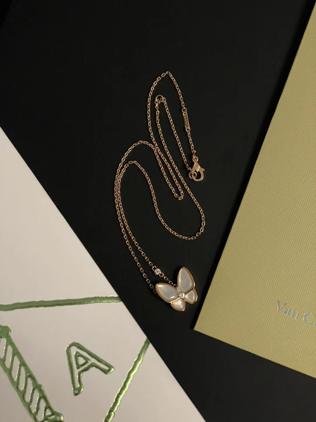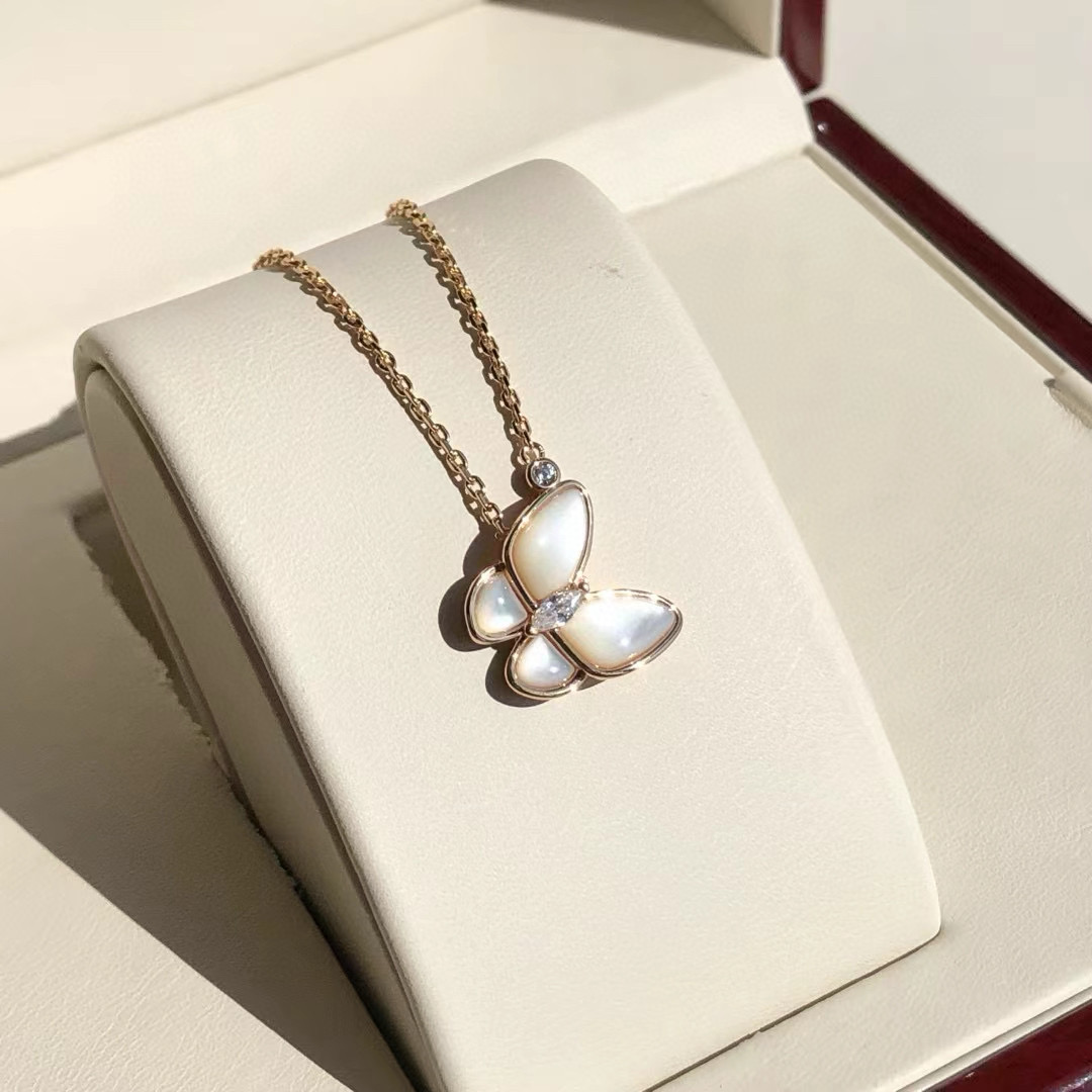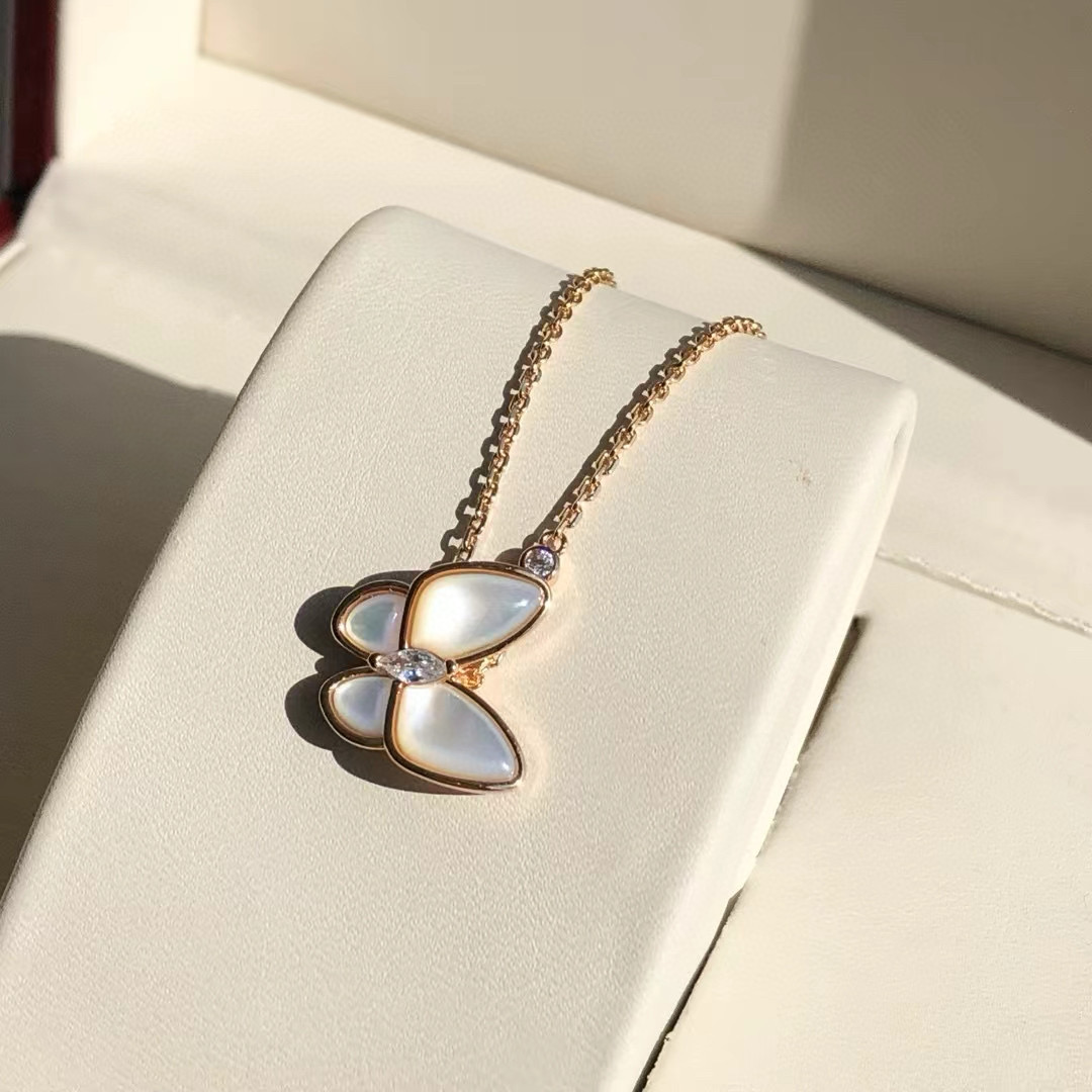 NIGO Van Cleef&Arpels Two Butterfly Women's Solid Color Butterfly Shape Diamonds Mother of Pearl Necklace Jewelry #nigo75539