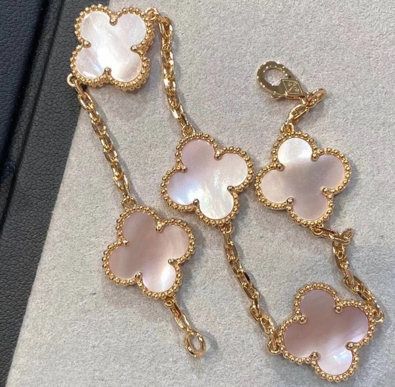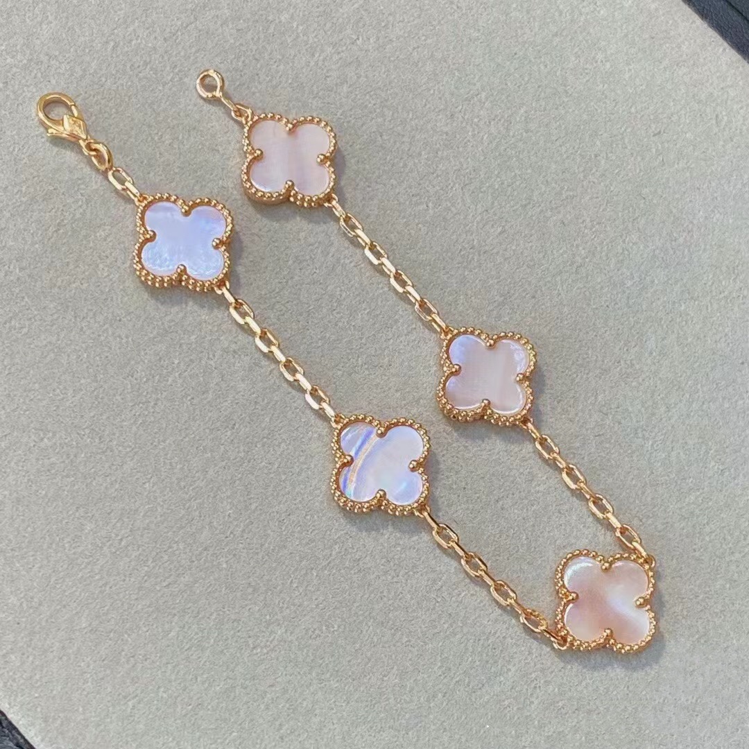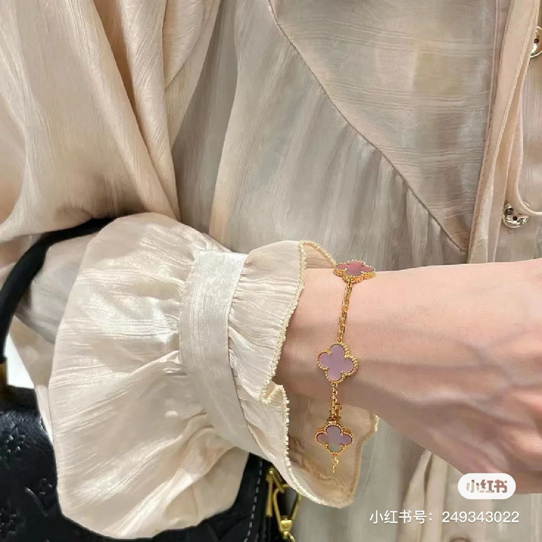 NIGO Van Cleef&Arpels Women's Fashion Five Pendant Clover Solid Color 925 Silver Bracelet Accessories #nigo71443