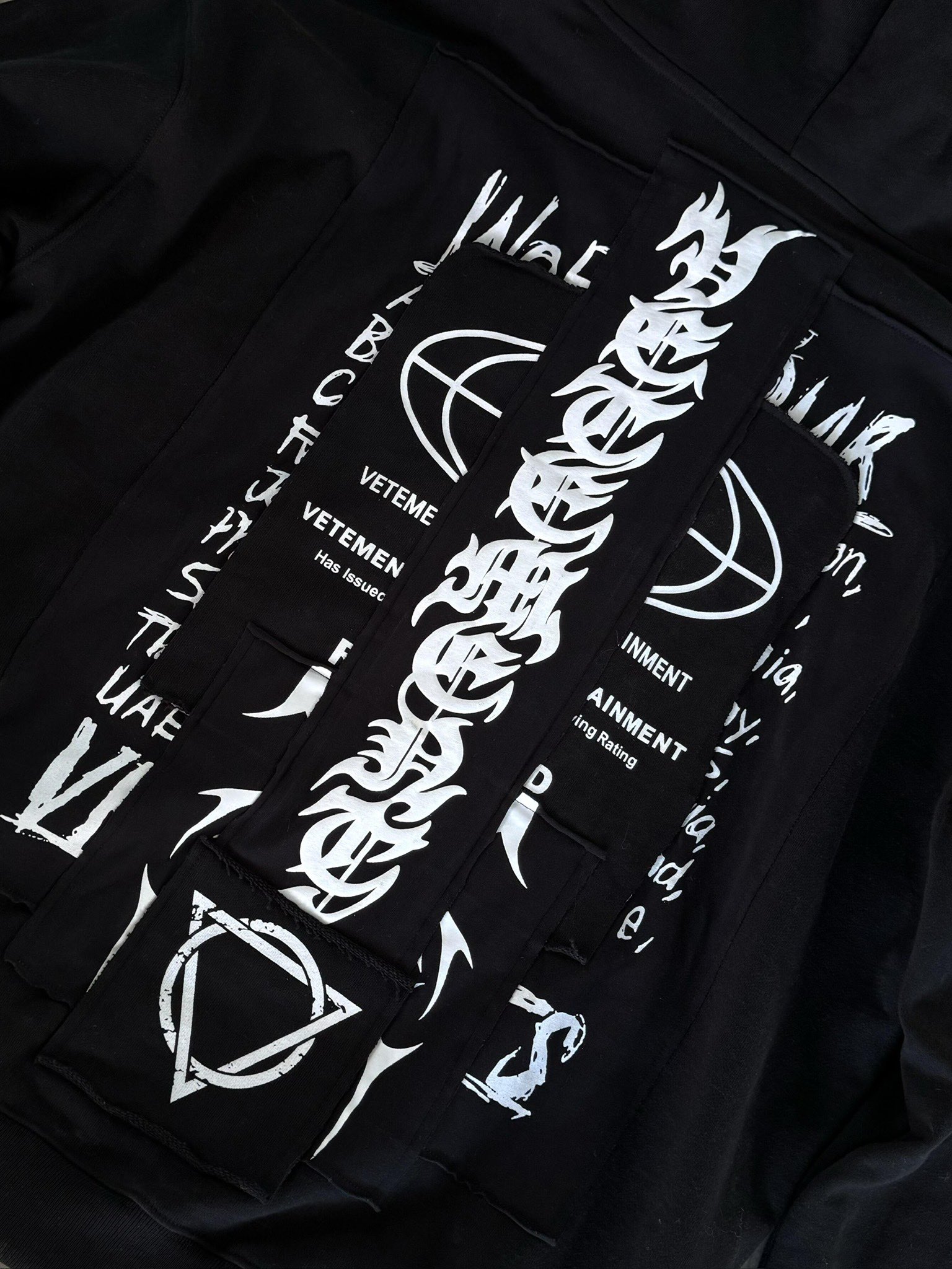 NIGO Vetements Men's Fashion Letter Graffiti Pentagram Embroidery Loose Black Zipper Long Sleeve Hoodie #nigo74542