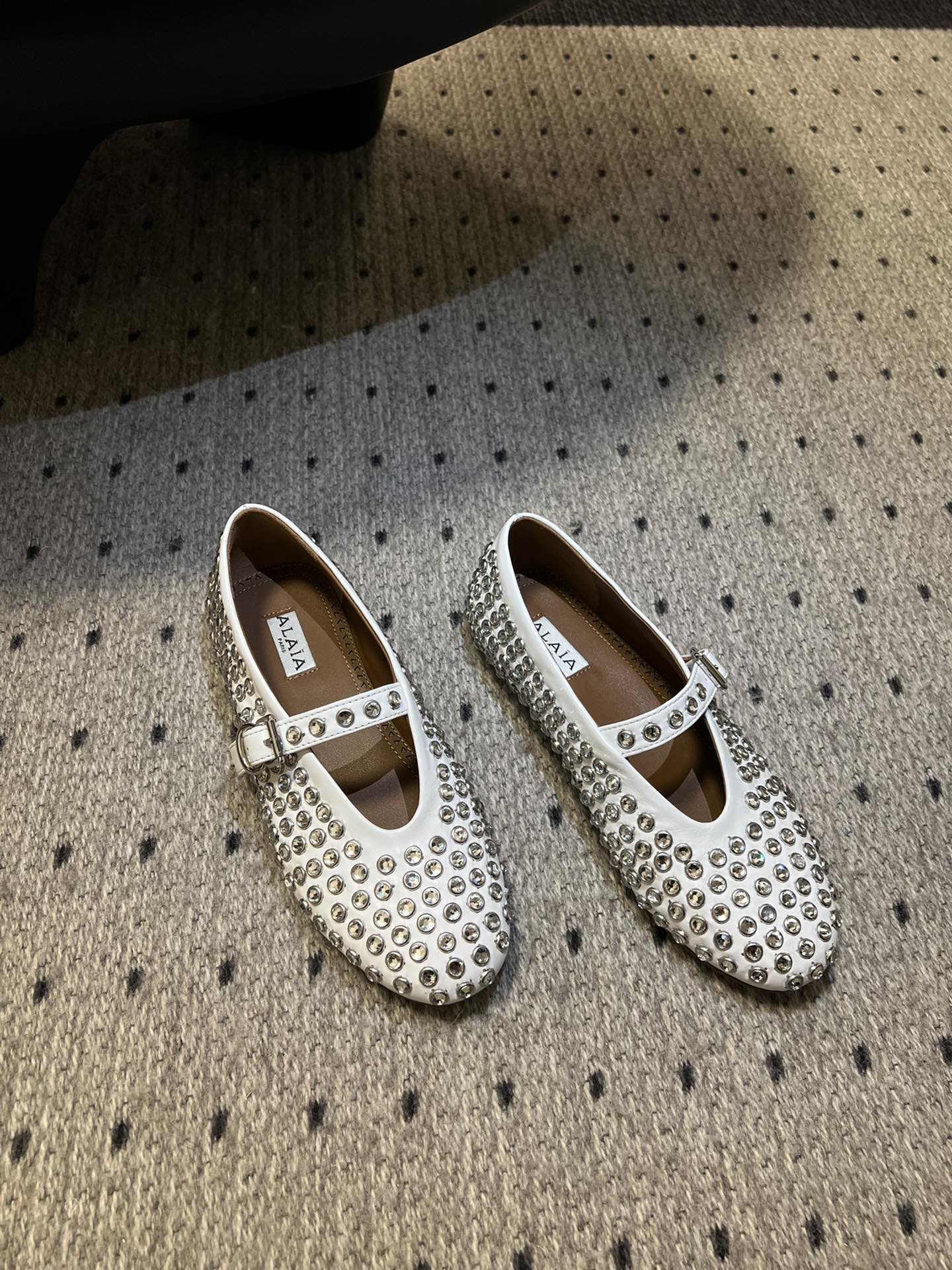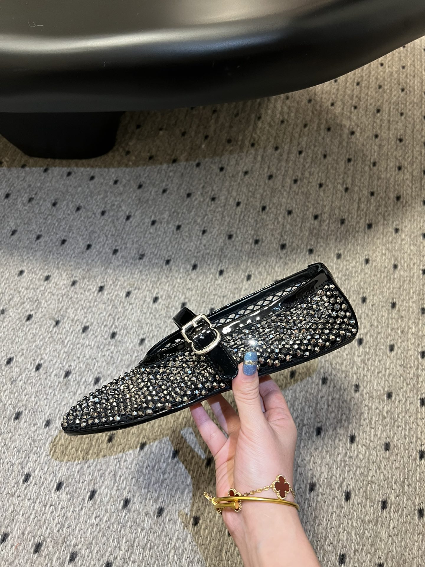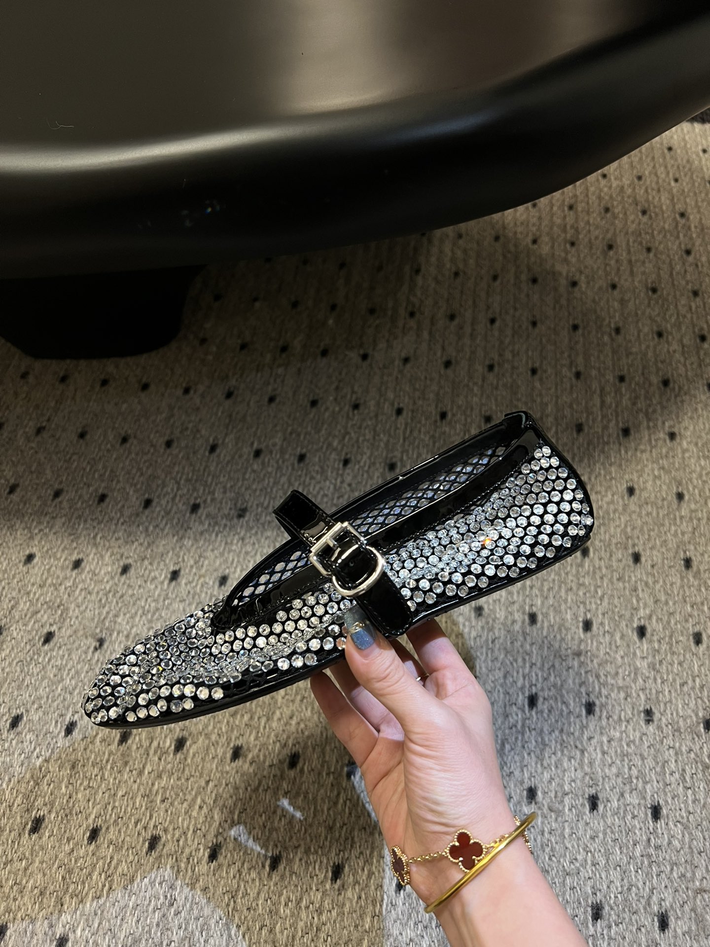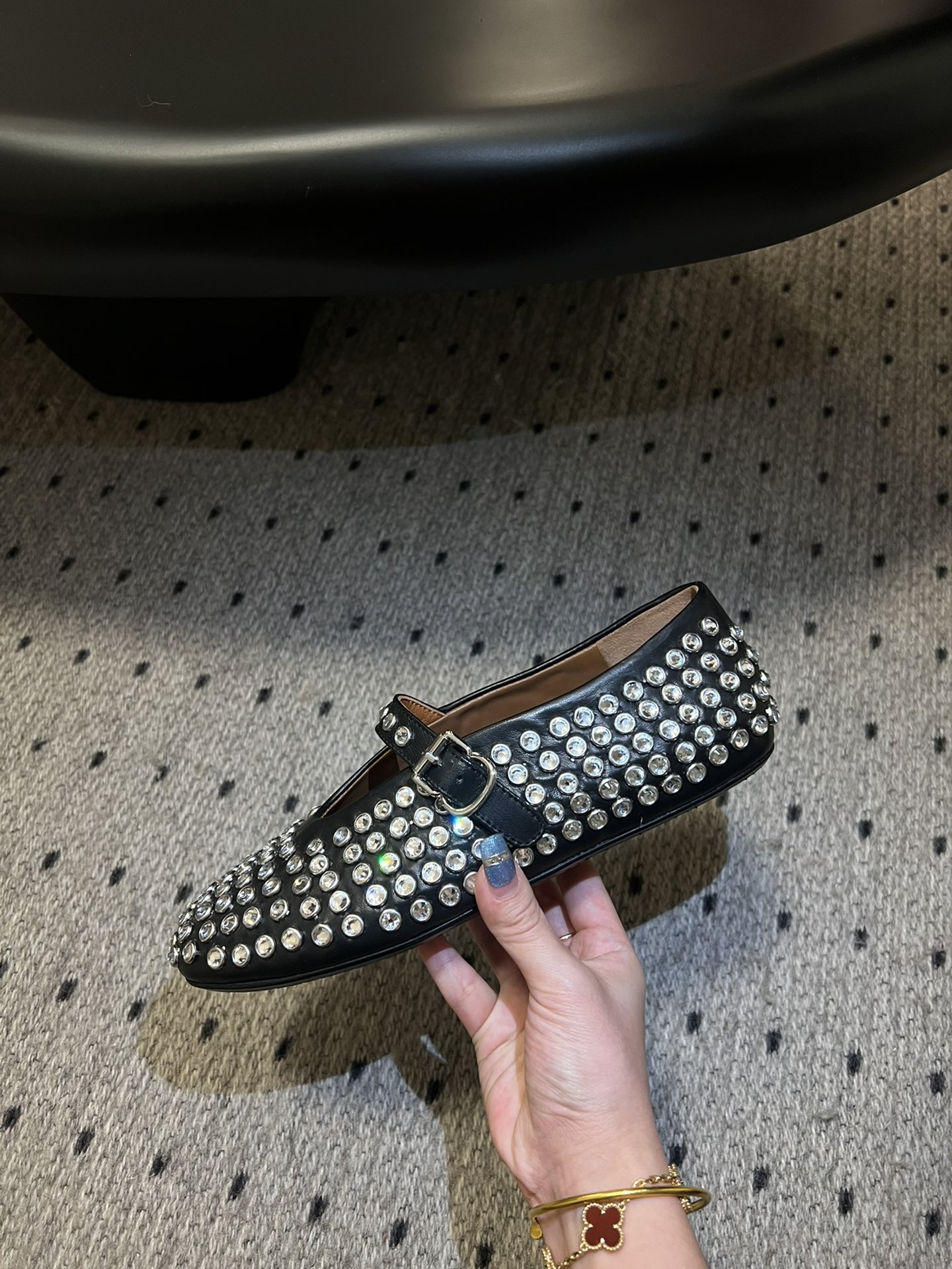 NIGO Women's Spring And Summer Solid Color Rhinestone Fashion Casual Leather Ballet Shoes #nigo73259