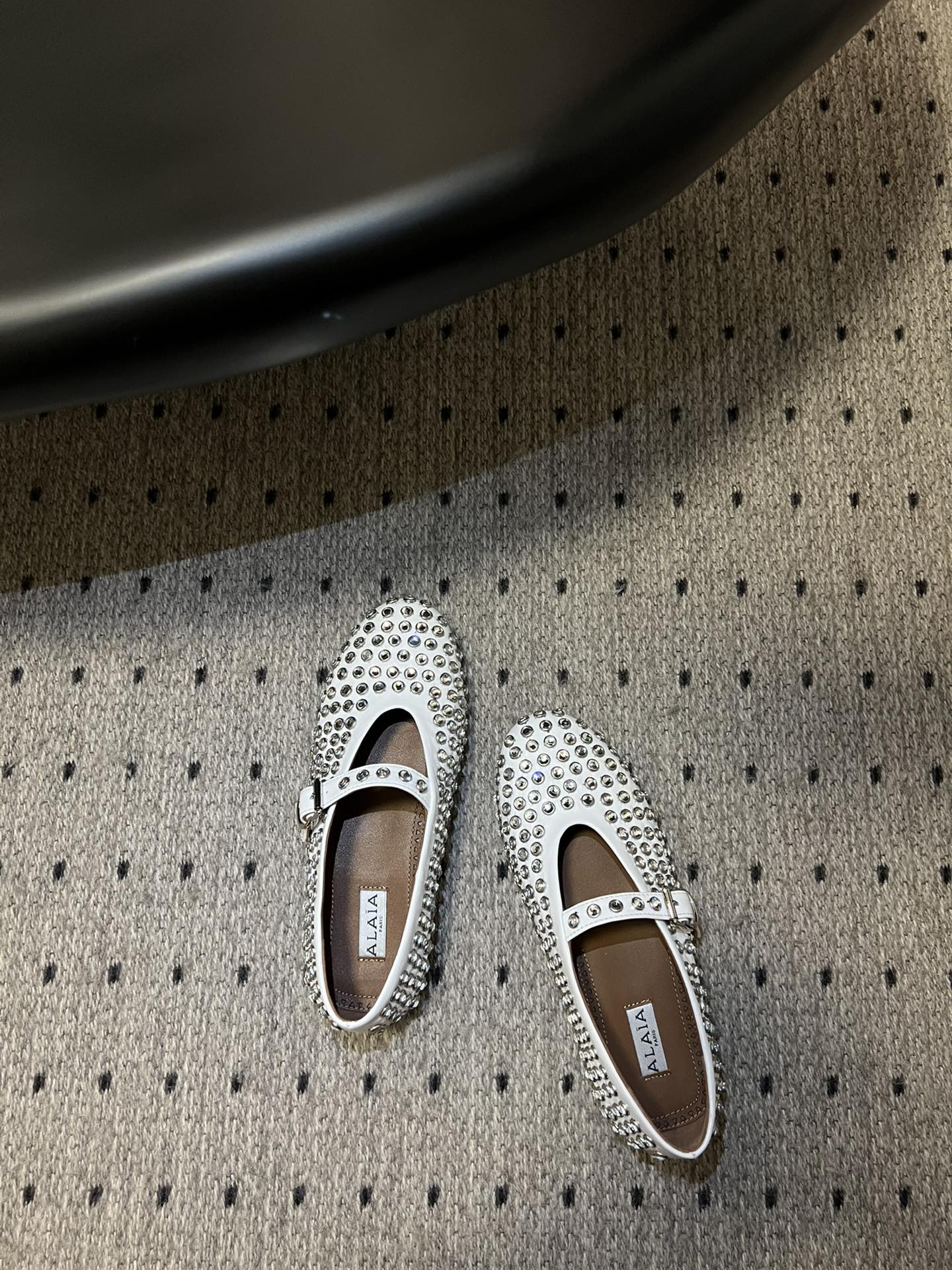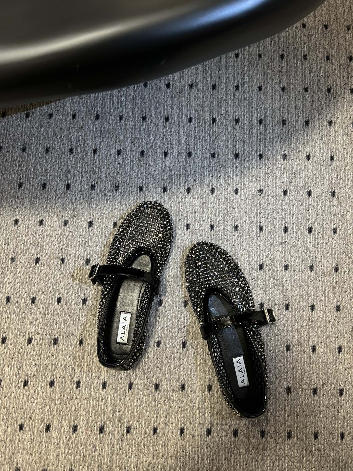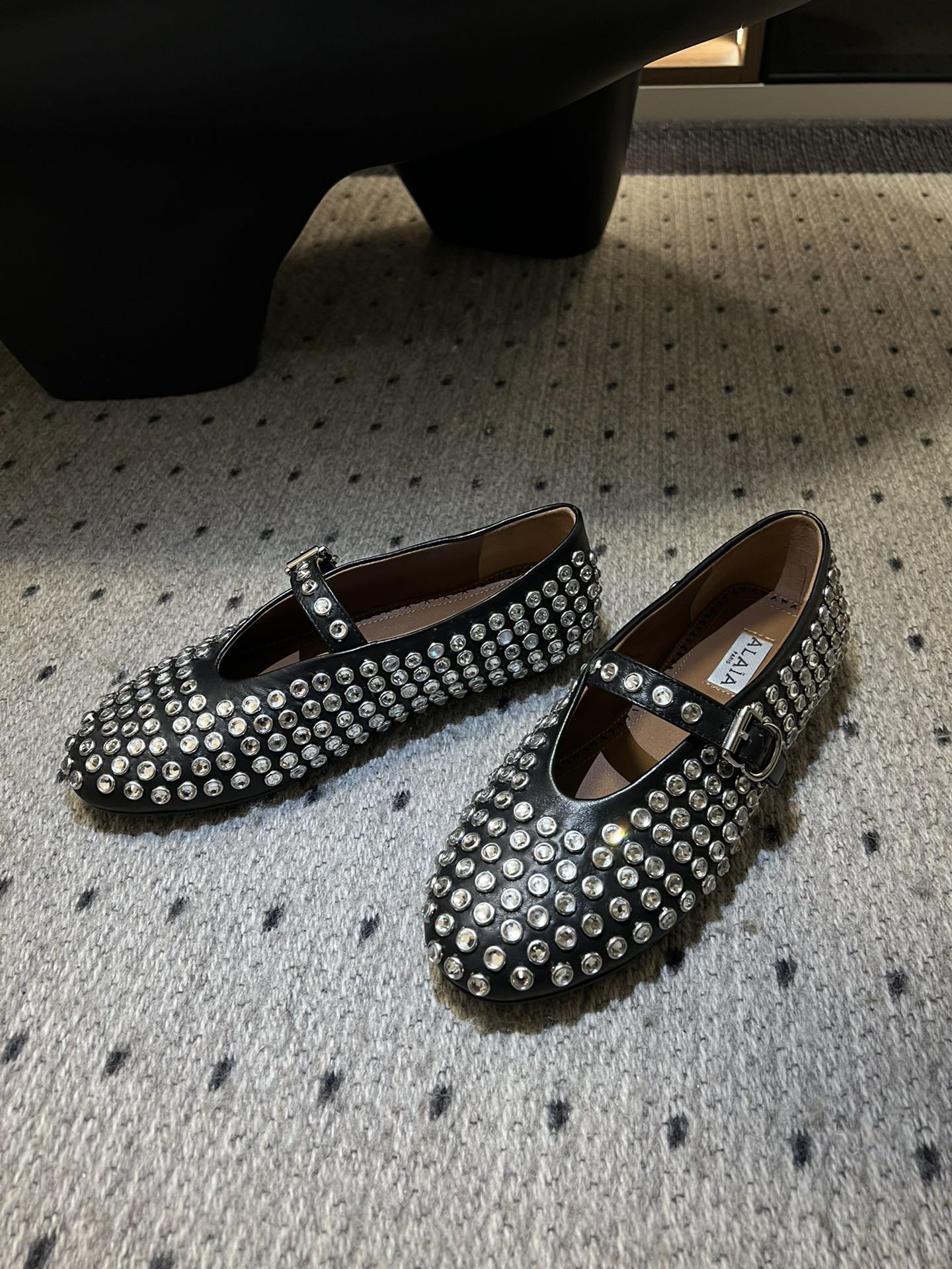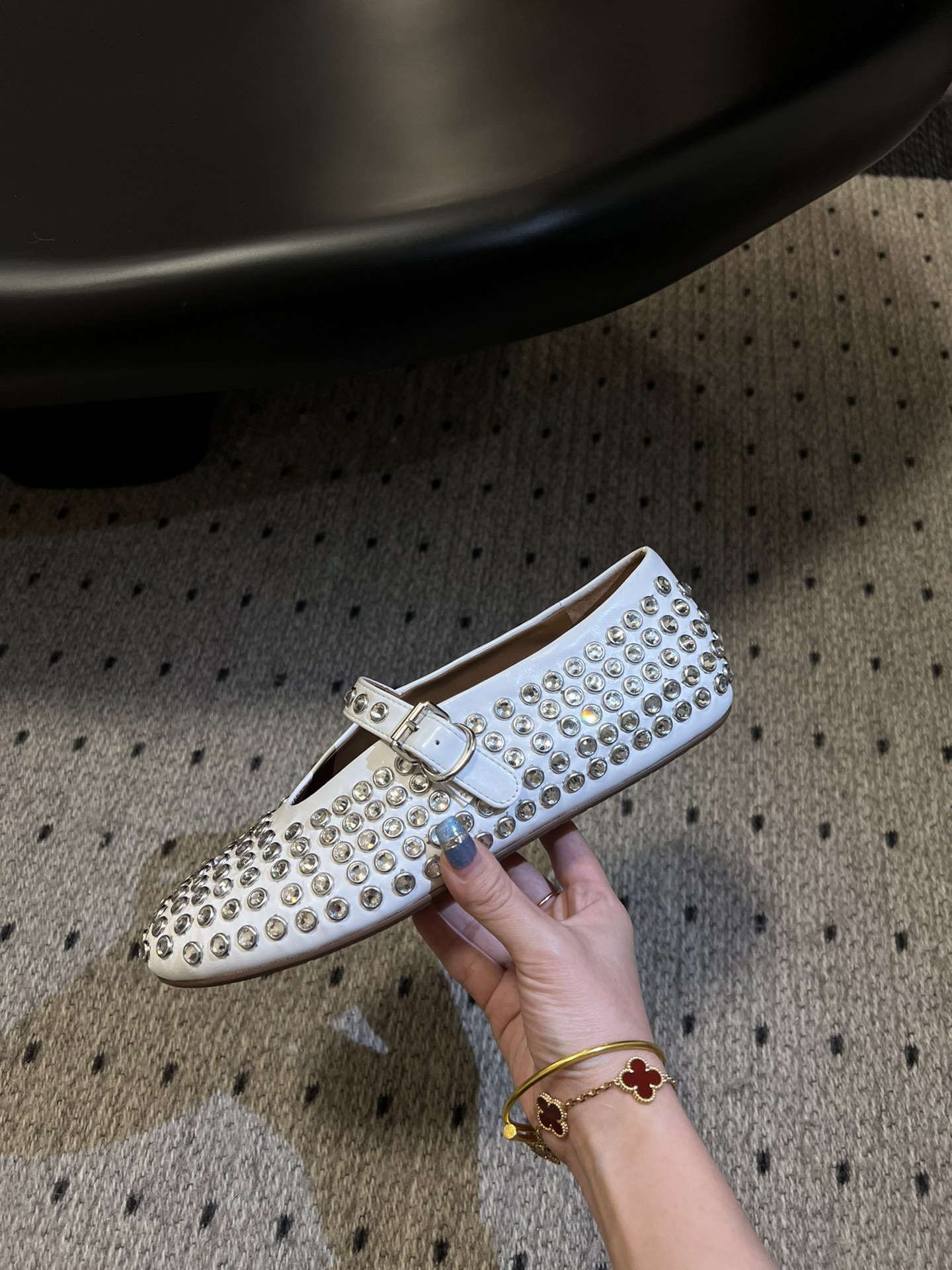 NIGO Women's Spring And Summer Solid Color Rhinestone Fashion Casual Leather Ballet Shoes #nigo73259