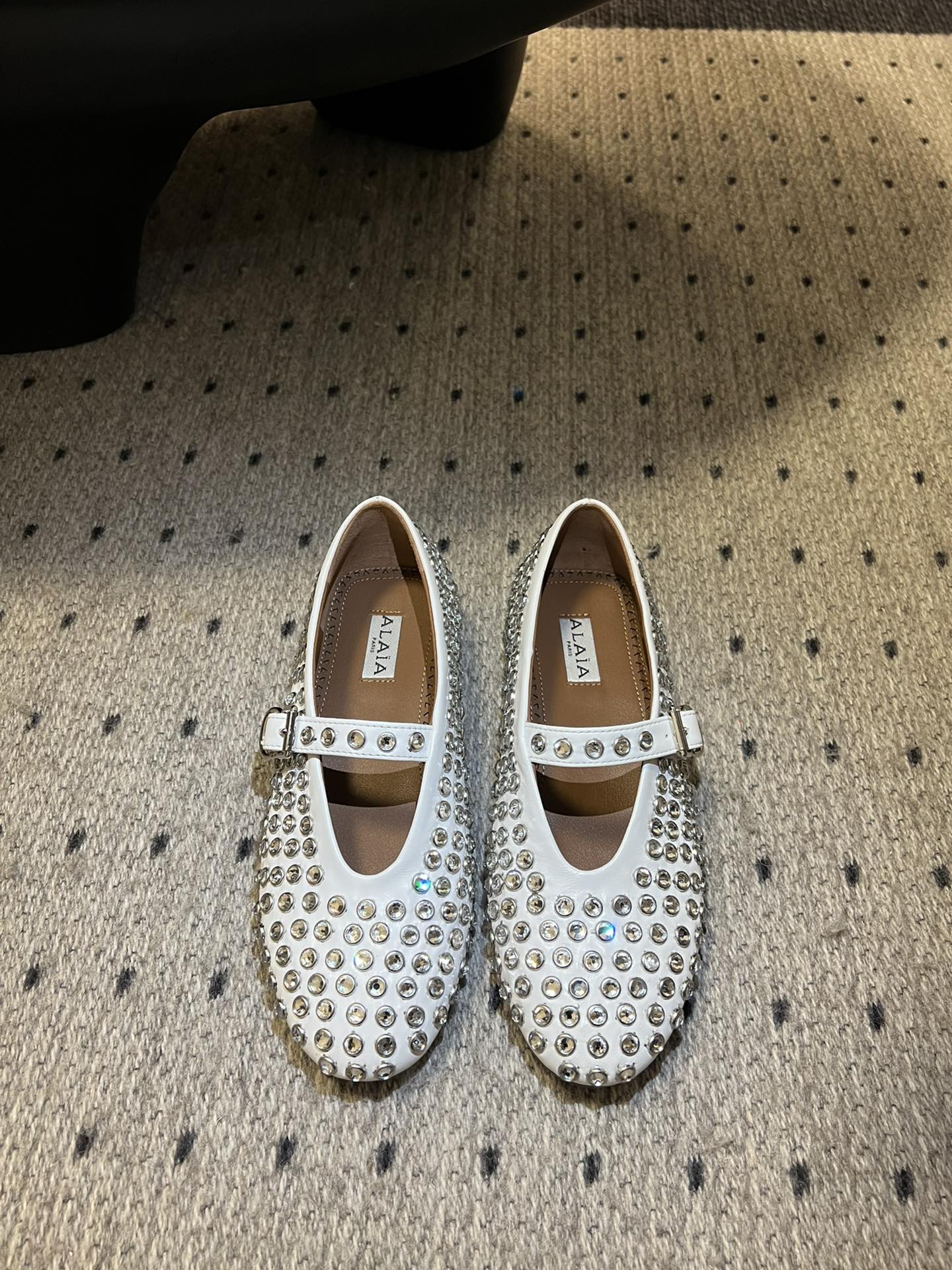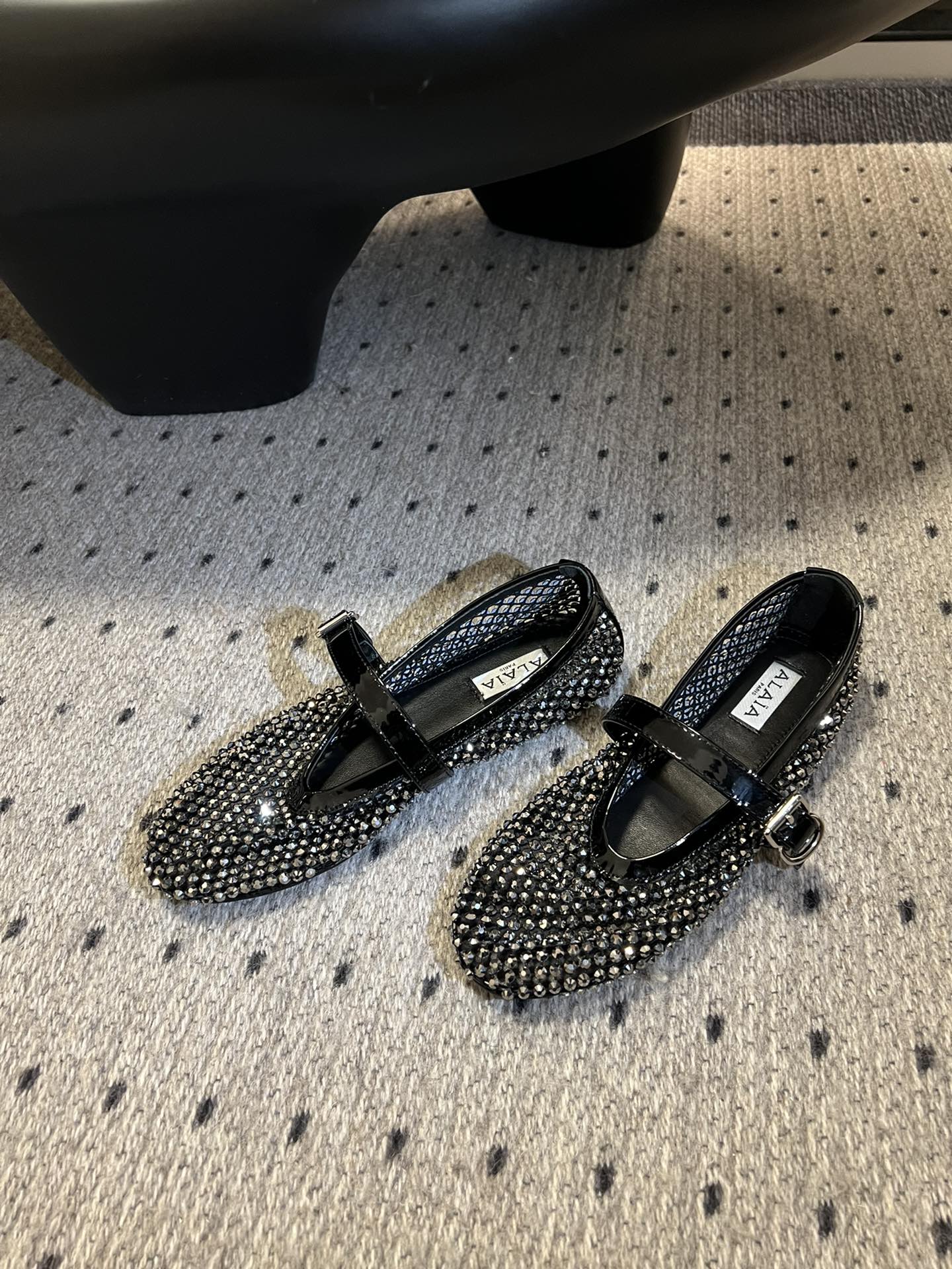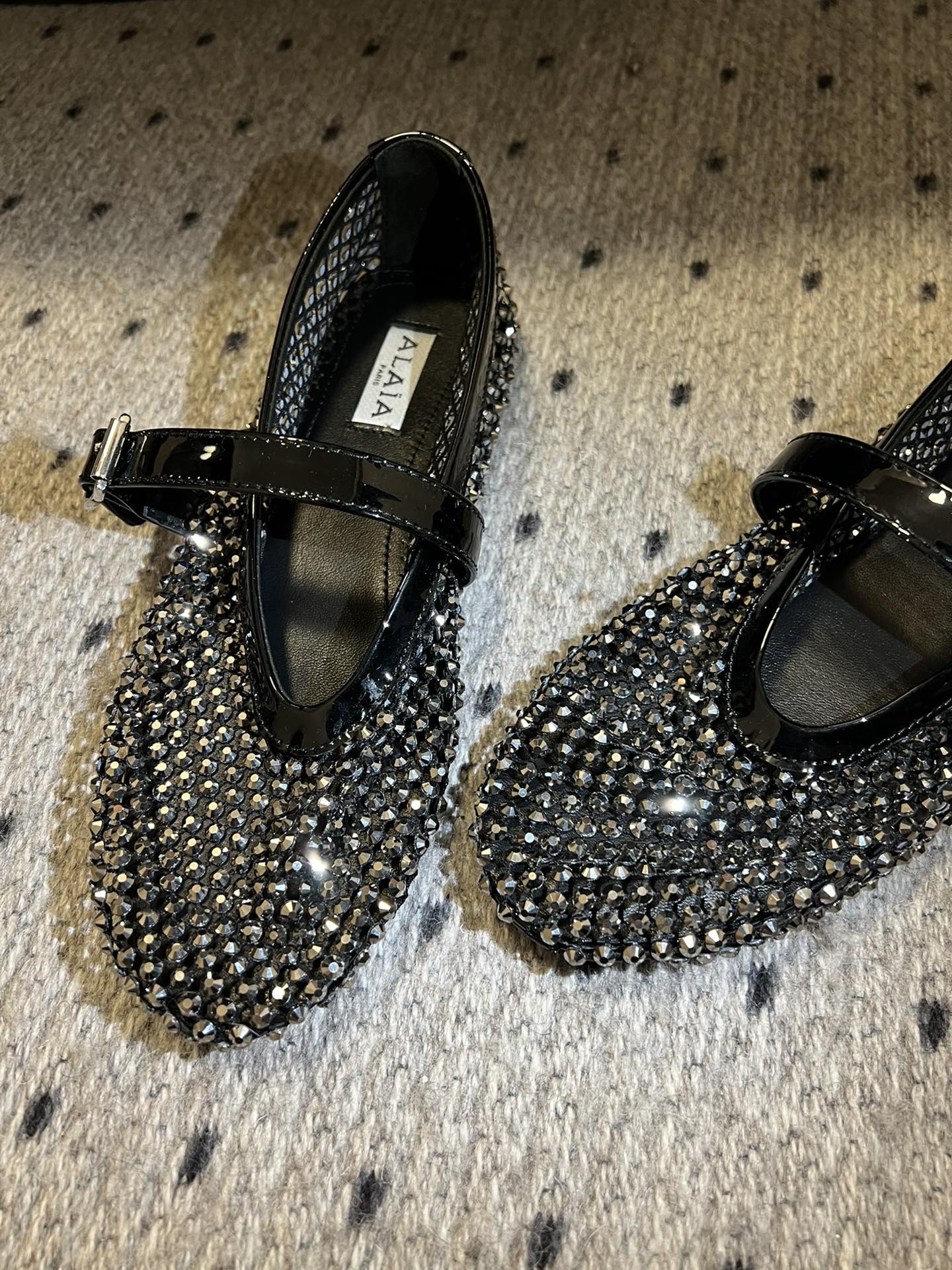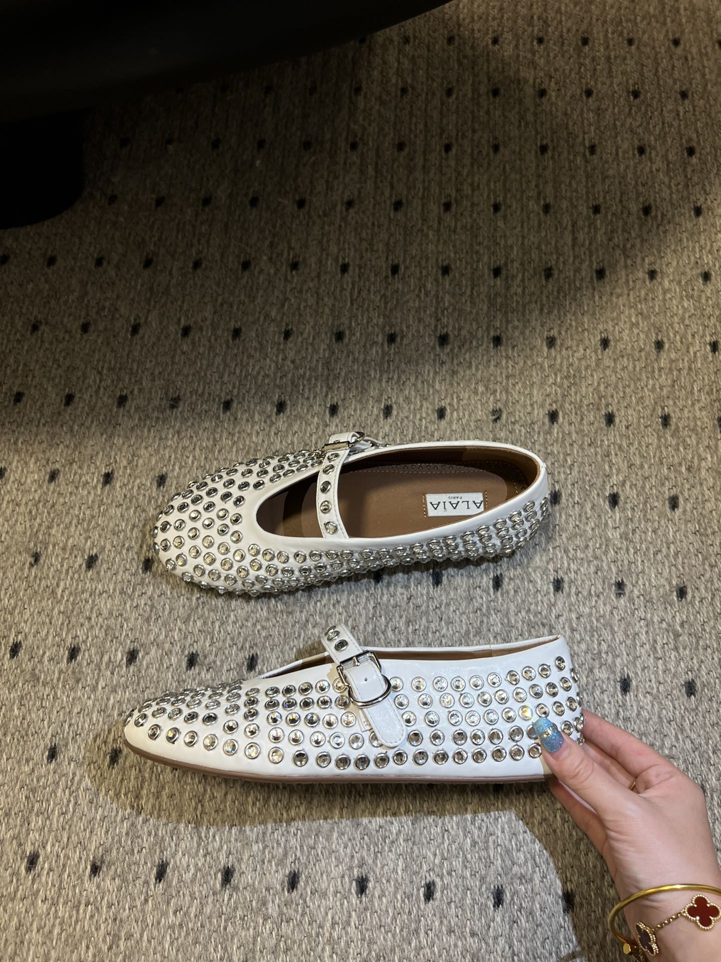 NIGO Women's Spring And Summer Solid Color Rhinestone Fashion Casual Leather Ballet Shoes #nigo73259