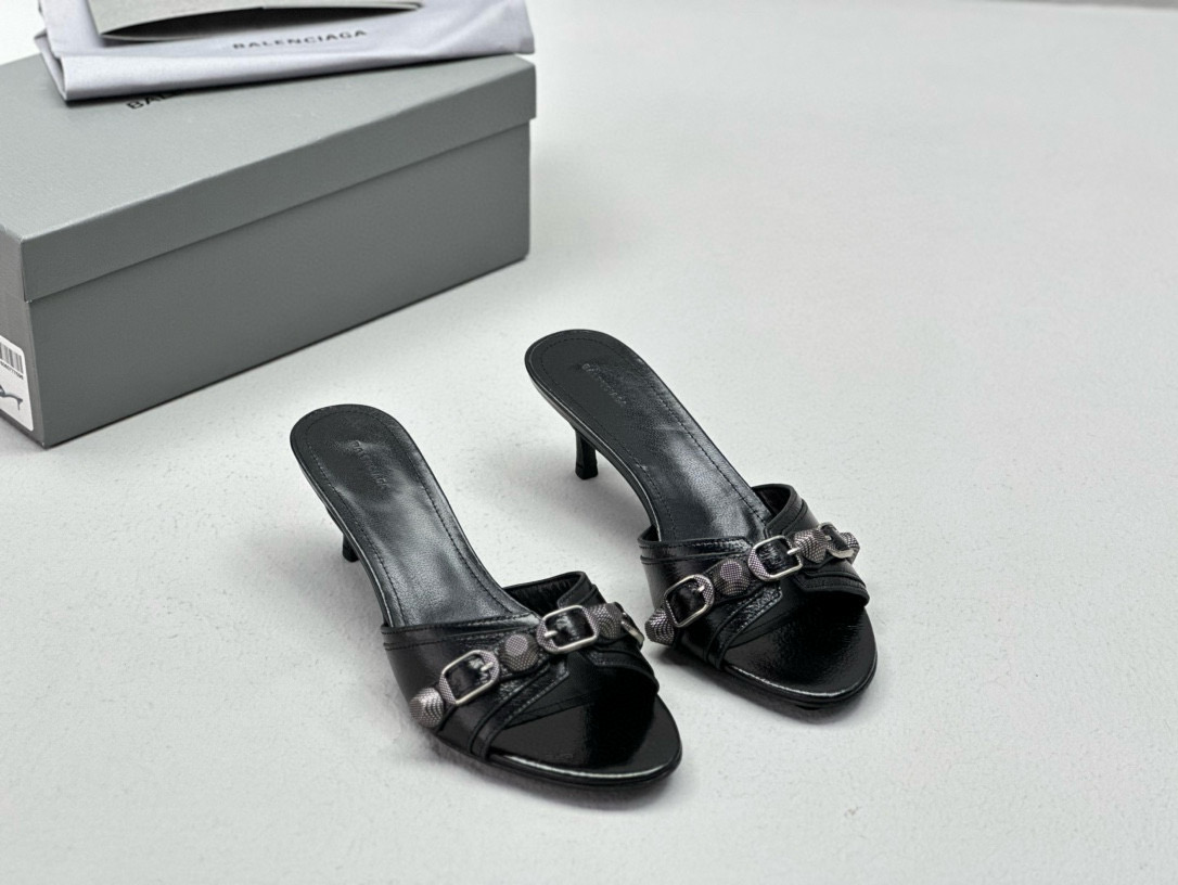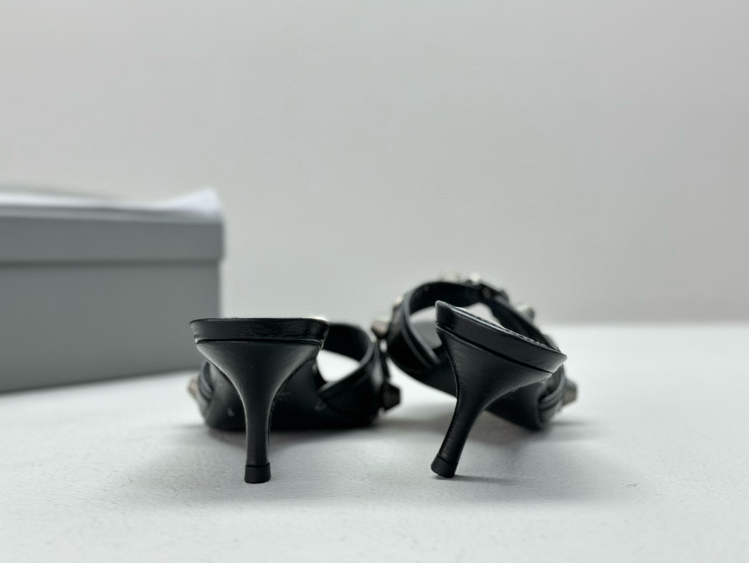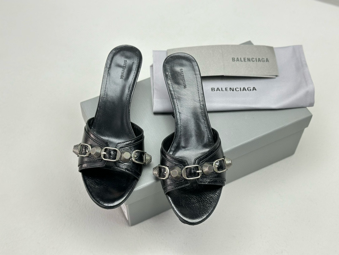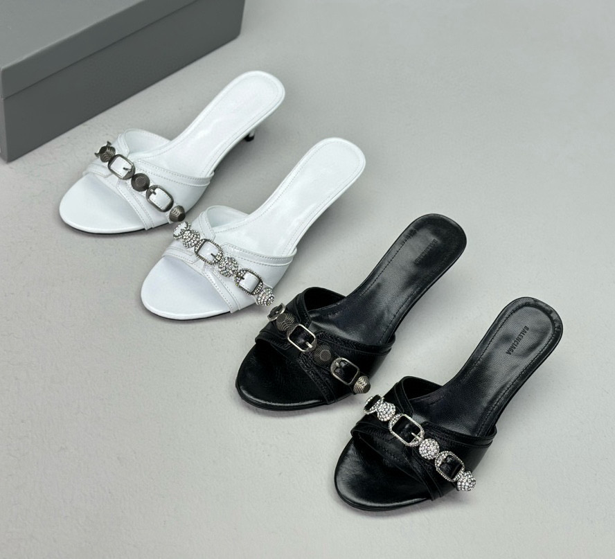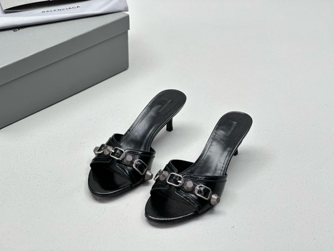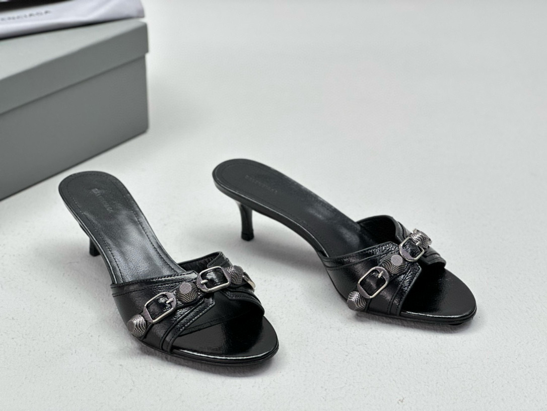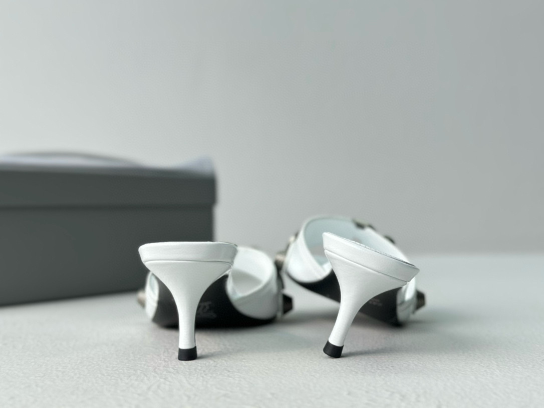 NIGO Women's Spring, Summer And Autumn Solid Color Metal Rivets Punk Style Round Head Leather High-Heeled Slippers Casual Shoes Ngvp #nigo8279