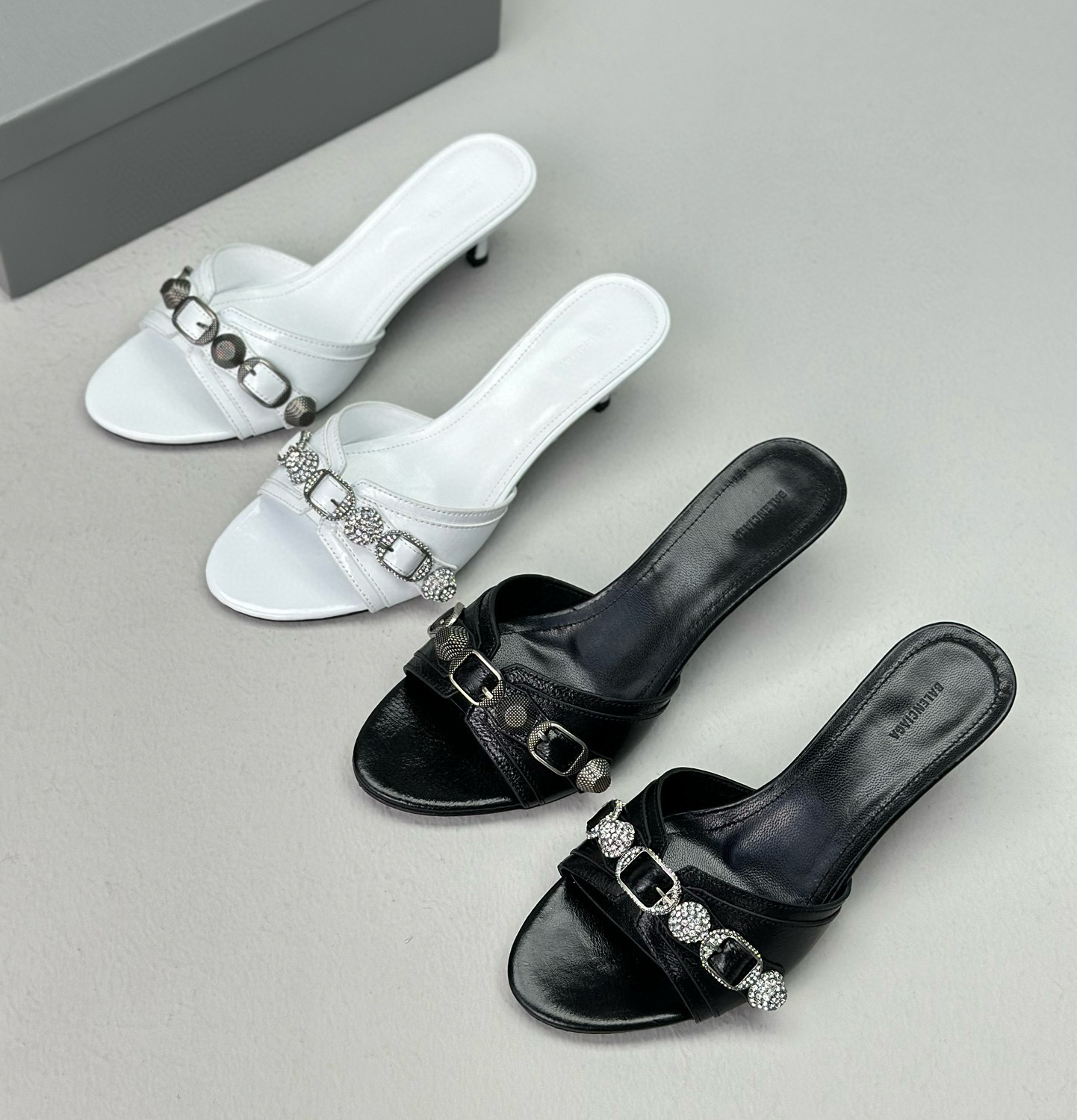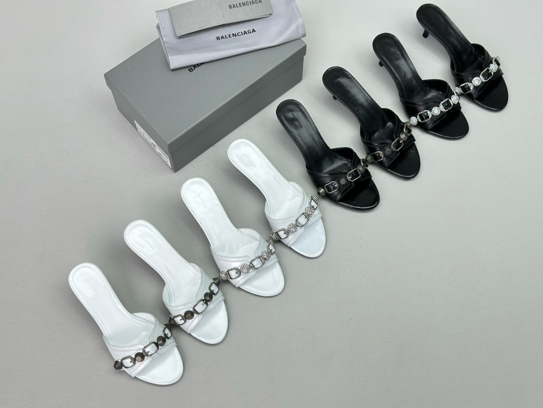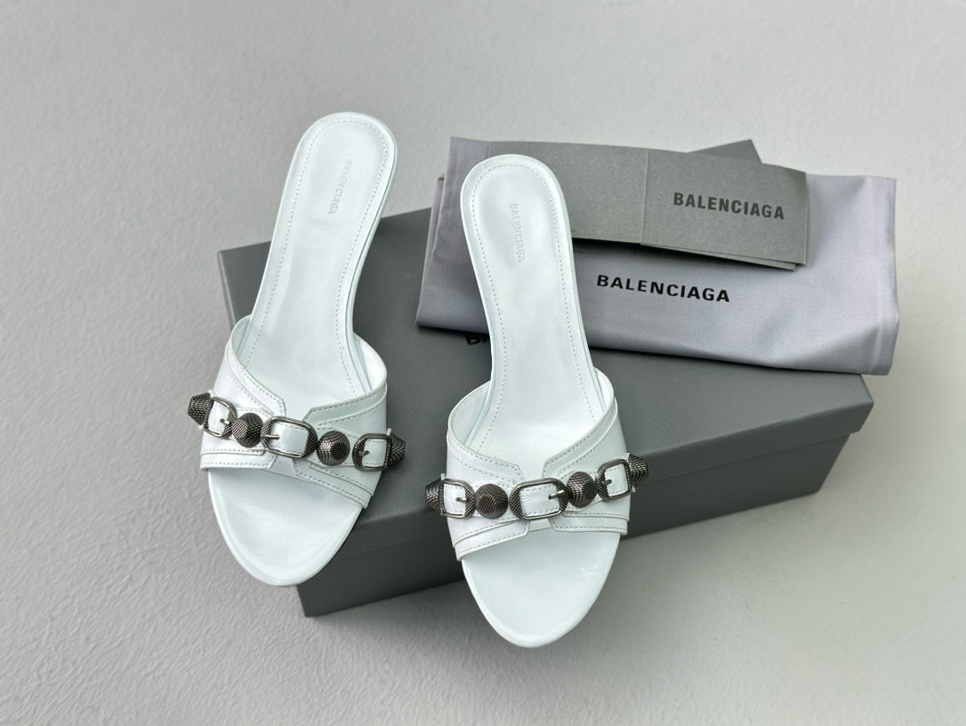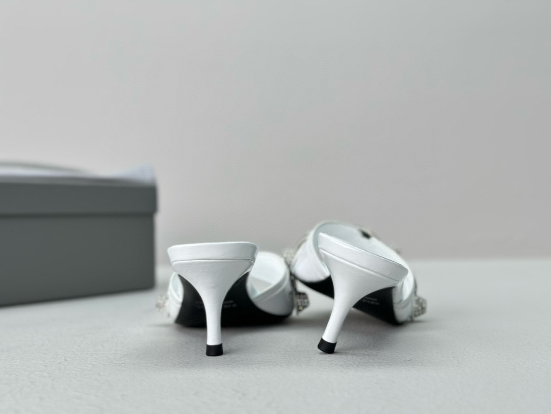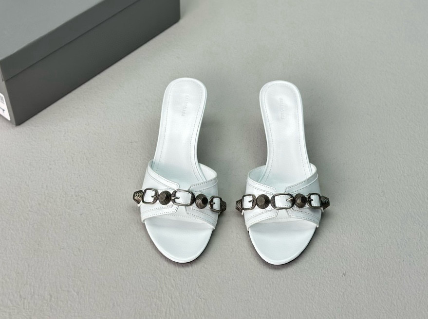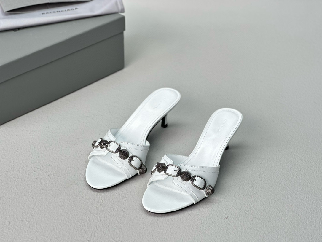 NIGO Women's Spring, Summer And Autumn Solid Color Metal Rivets Punk Style Round Head Leather High-Heeled Slippers Casual Shoes Ngvp #nigo8279