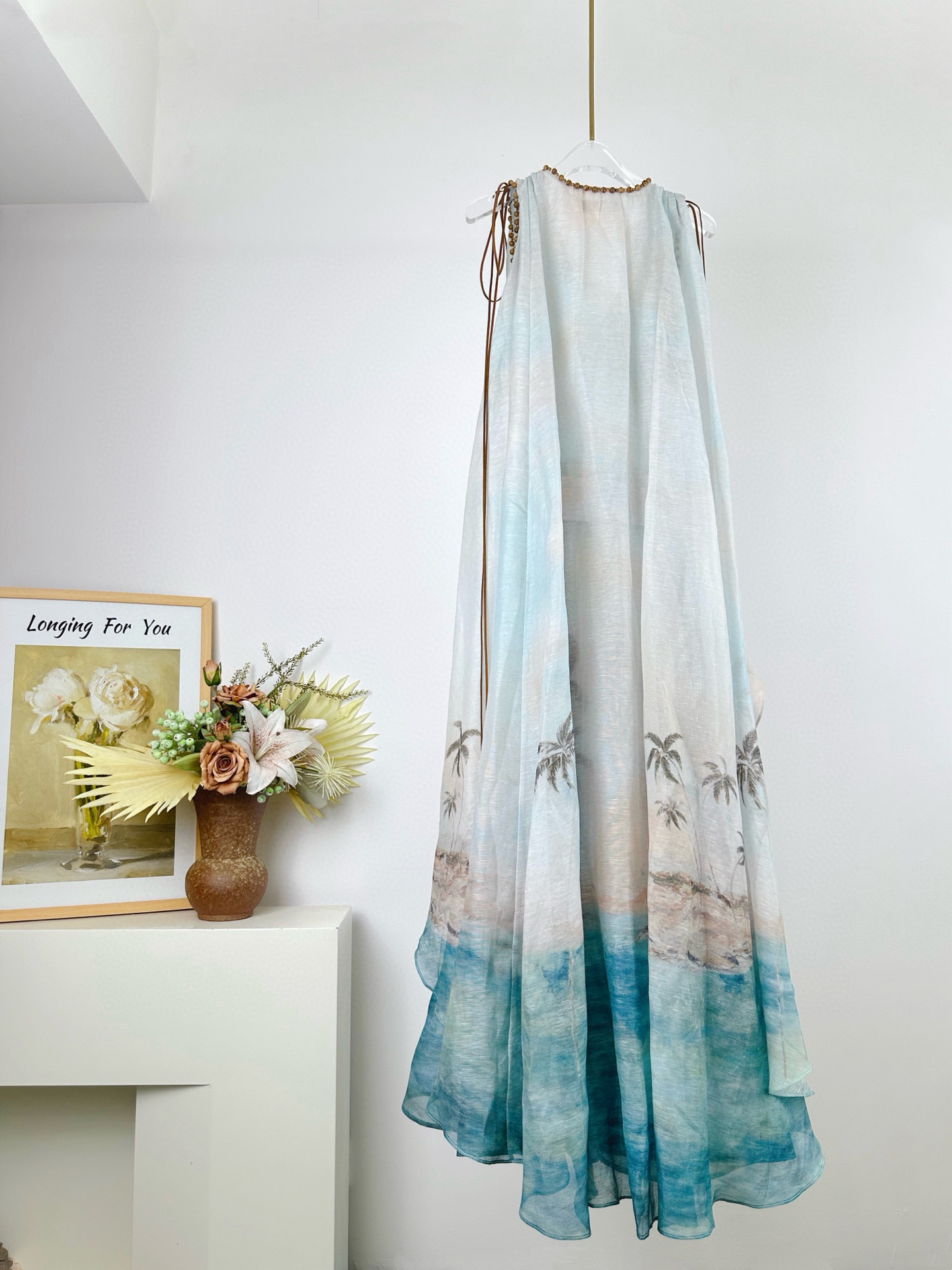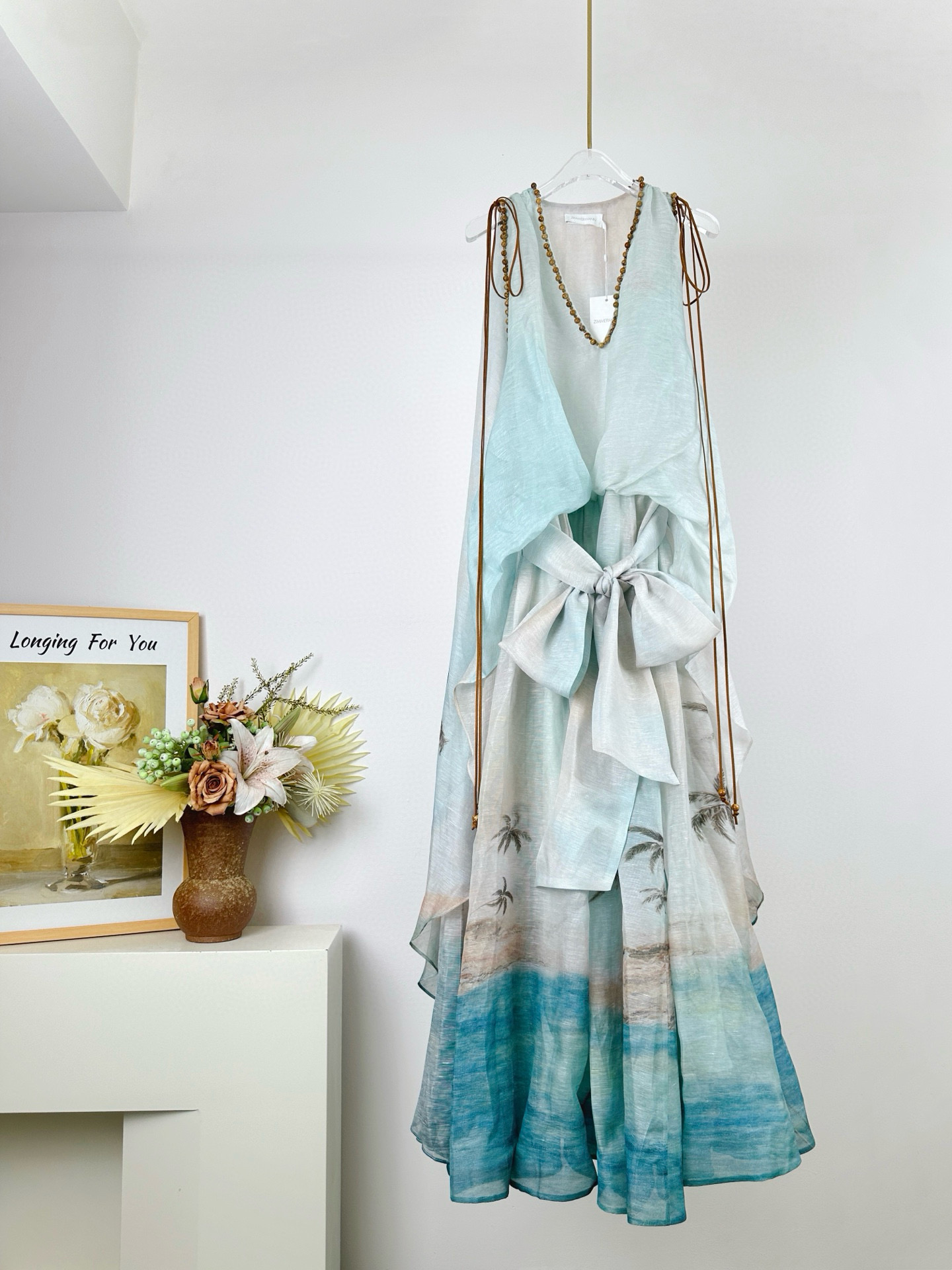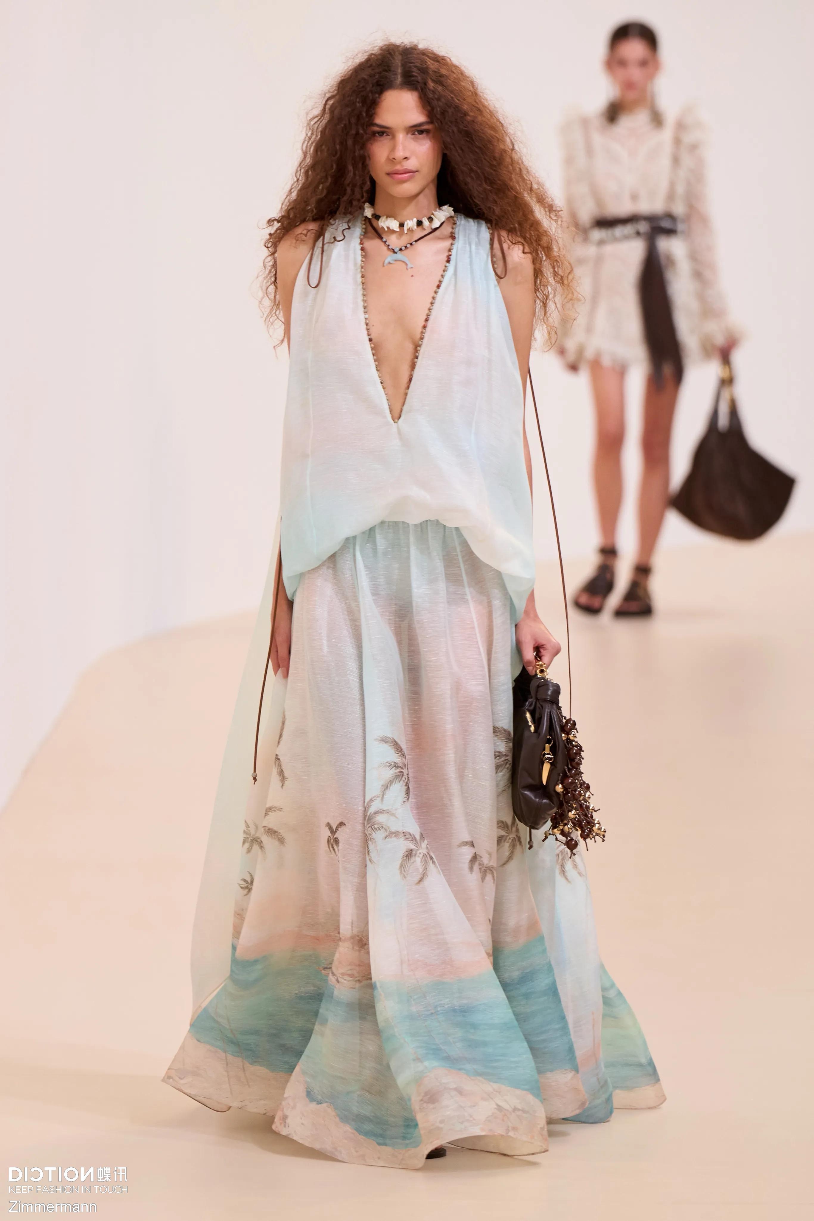 NIGO Zimmermann Women's Summer Solid Color Seascape Pattern Printed V-neck Sleeveless Long Dress #nigo77342
