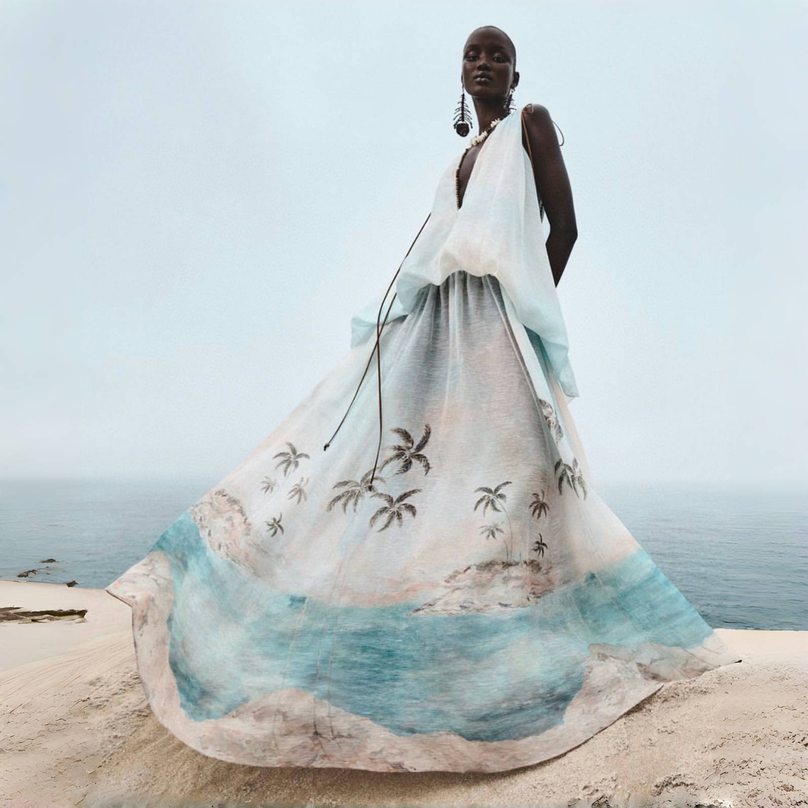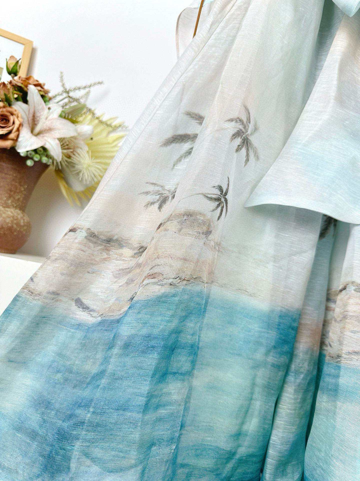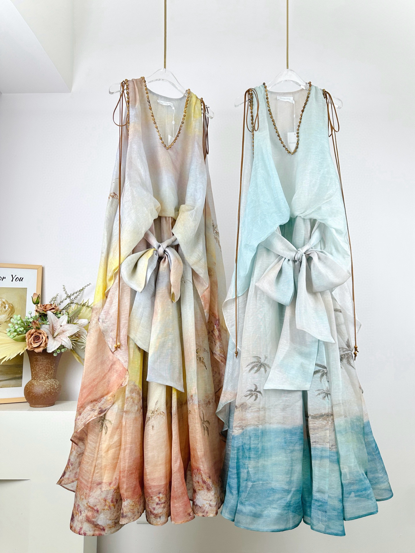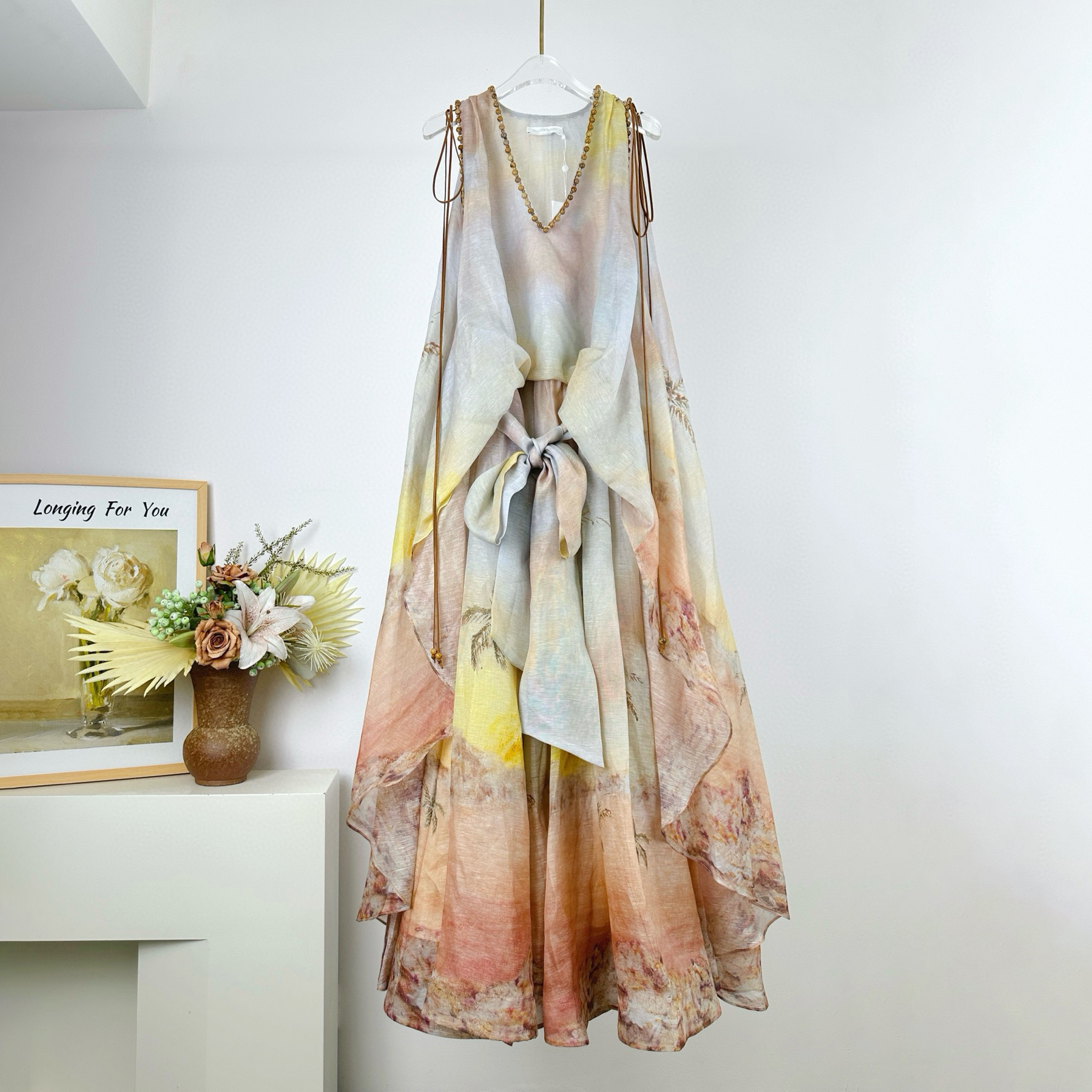 NIGO Zimmermann Women's Summer Solid Color Seascape Pattern Printed V-neck Sleeveless Long Dress #nigo77342