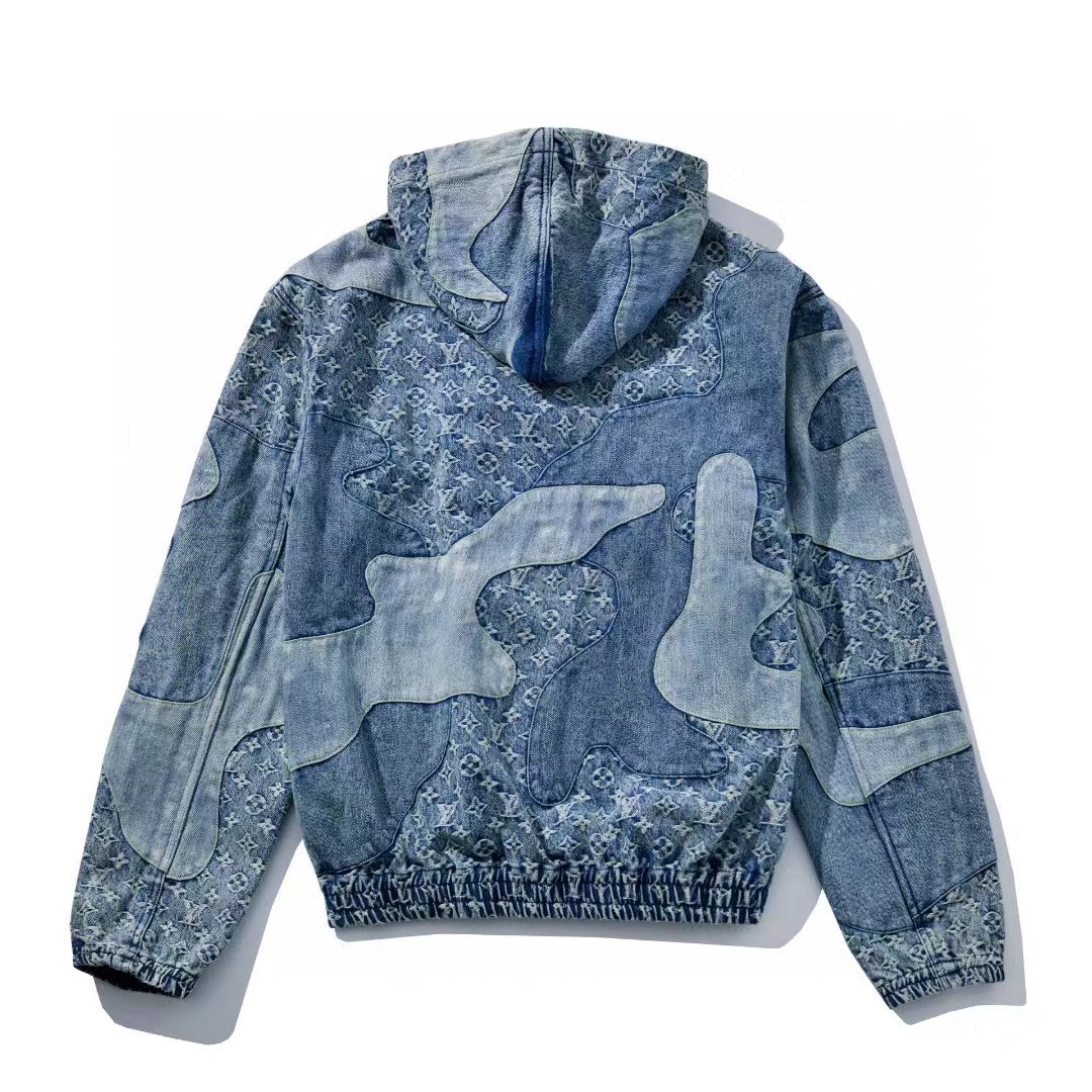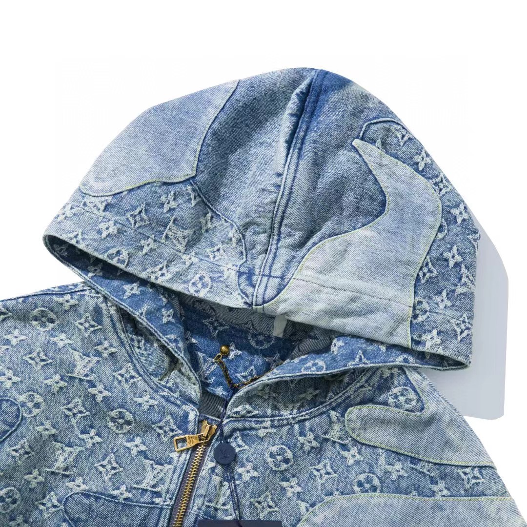NIGO Louis Vuitton Men's Spring And Fall Logo Spliced Denim Hooded Jacket Fashion Casual Fitted Jacket#nigo6622