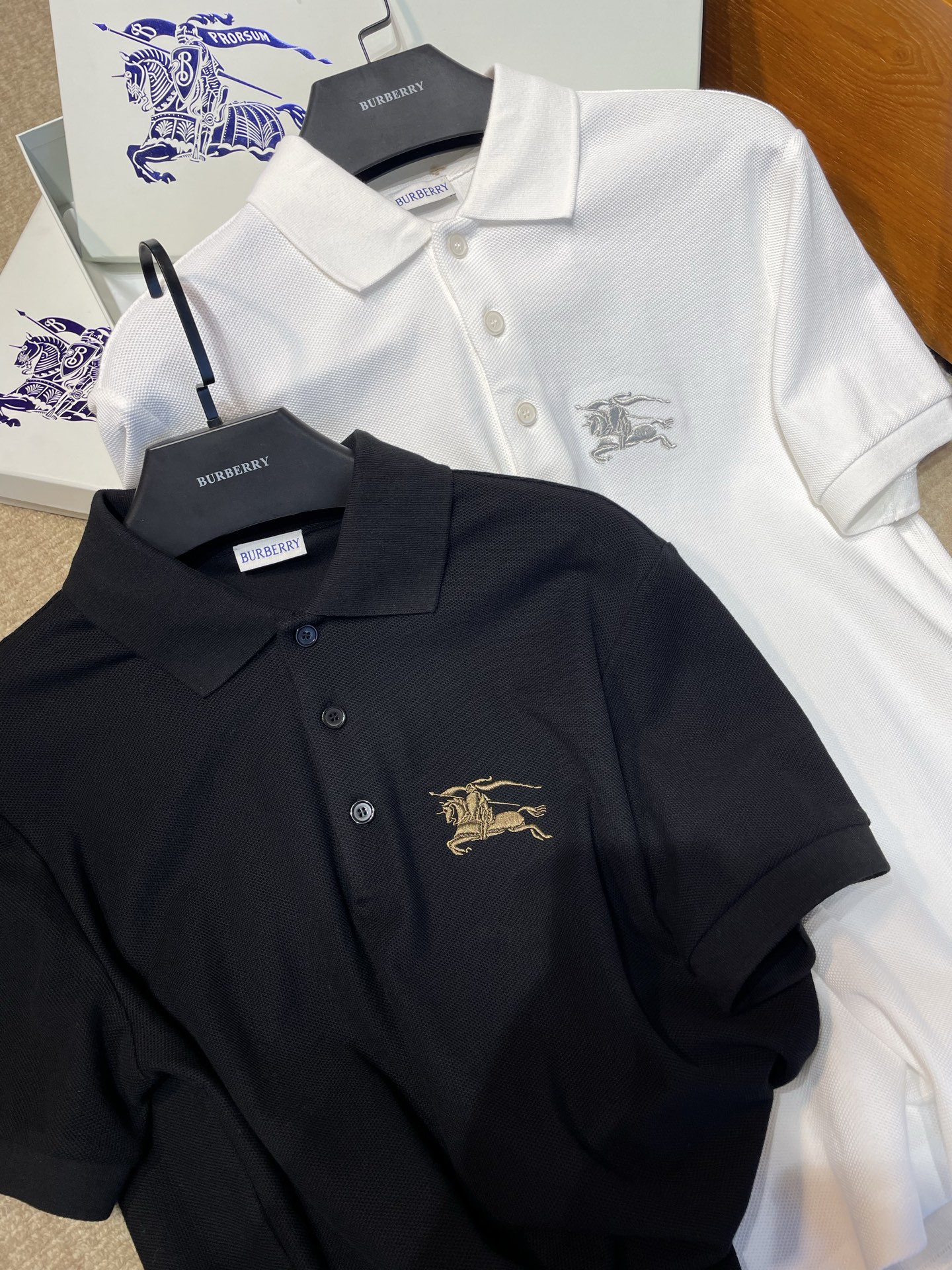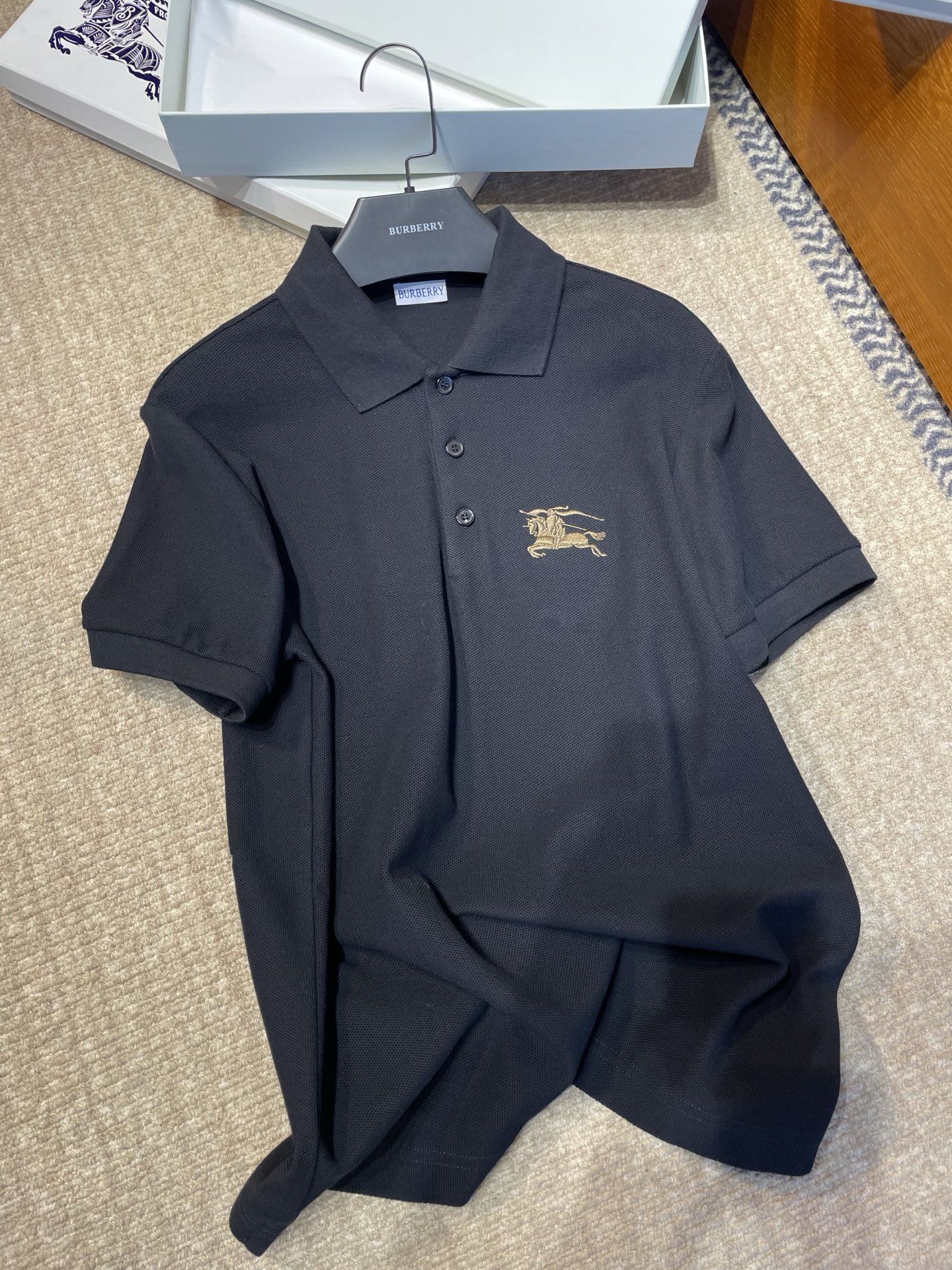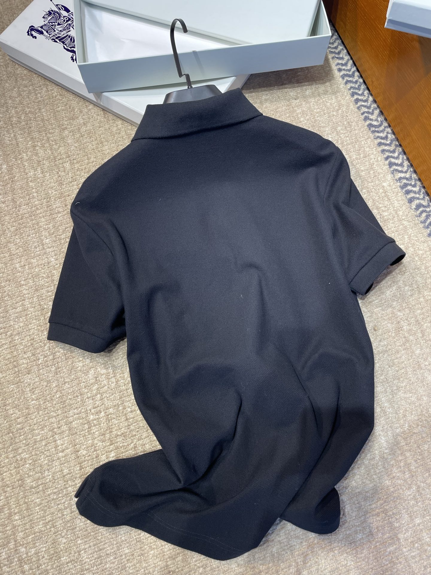 Burberry Men's Summer Solid Color Embroidered Logo Pearl Cotton Polo Neck Short Sleeve T-Shirt #77826