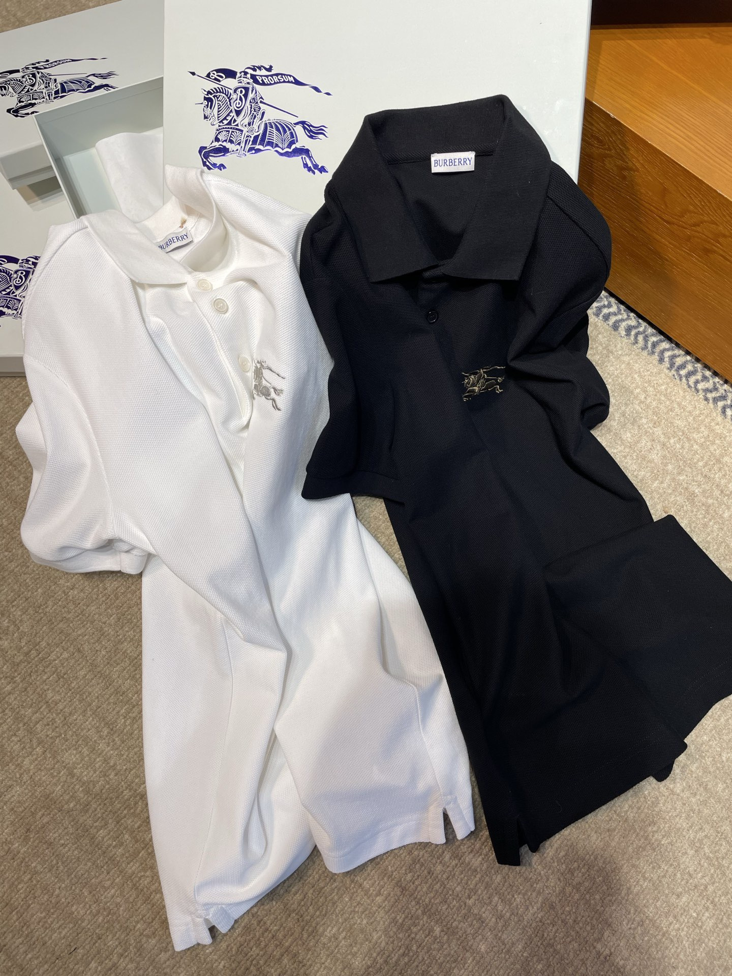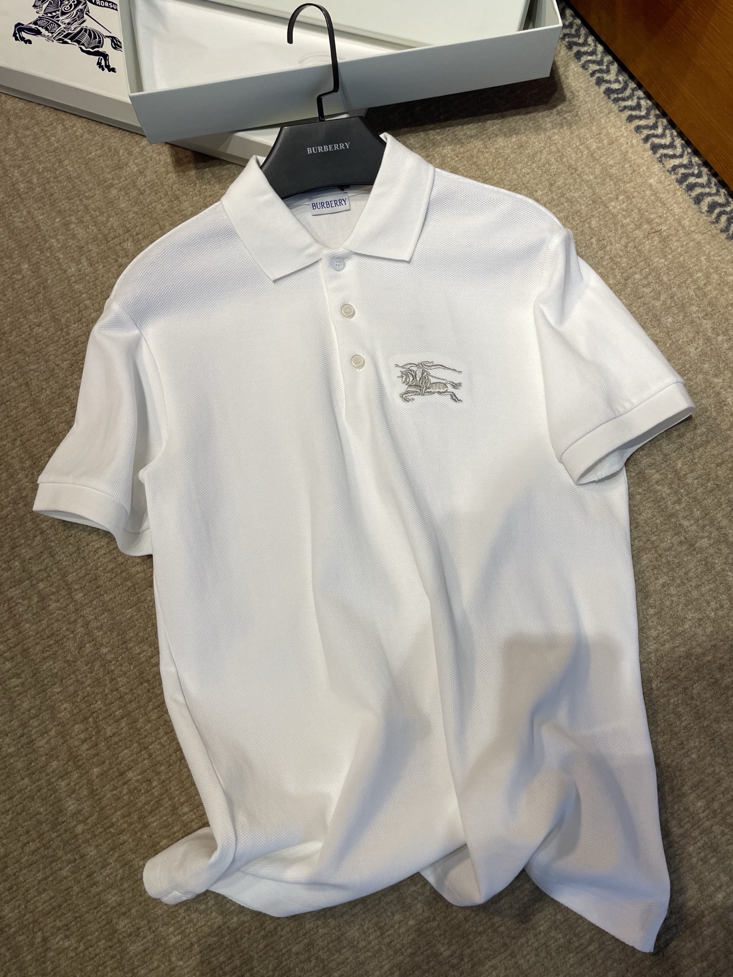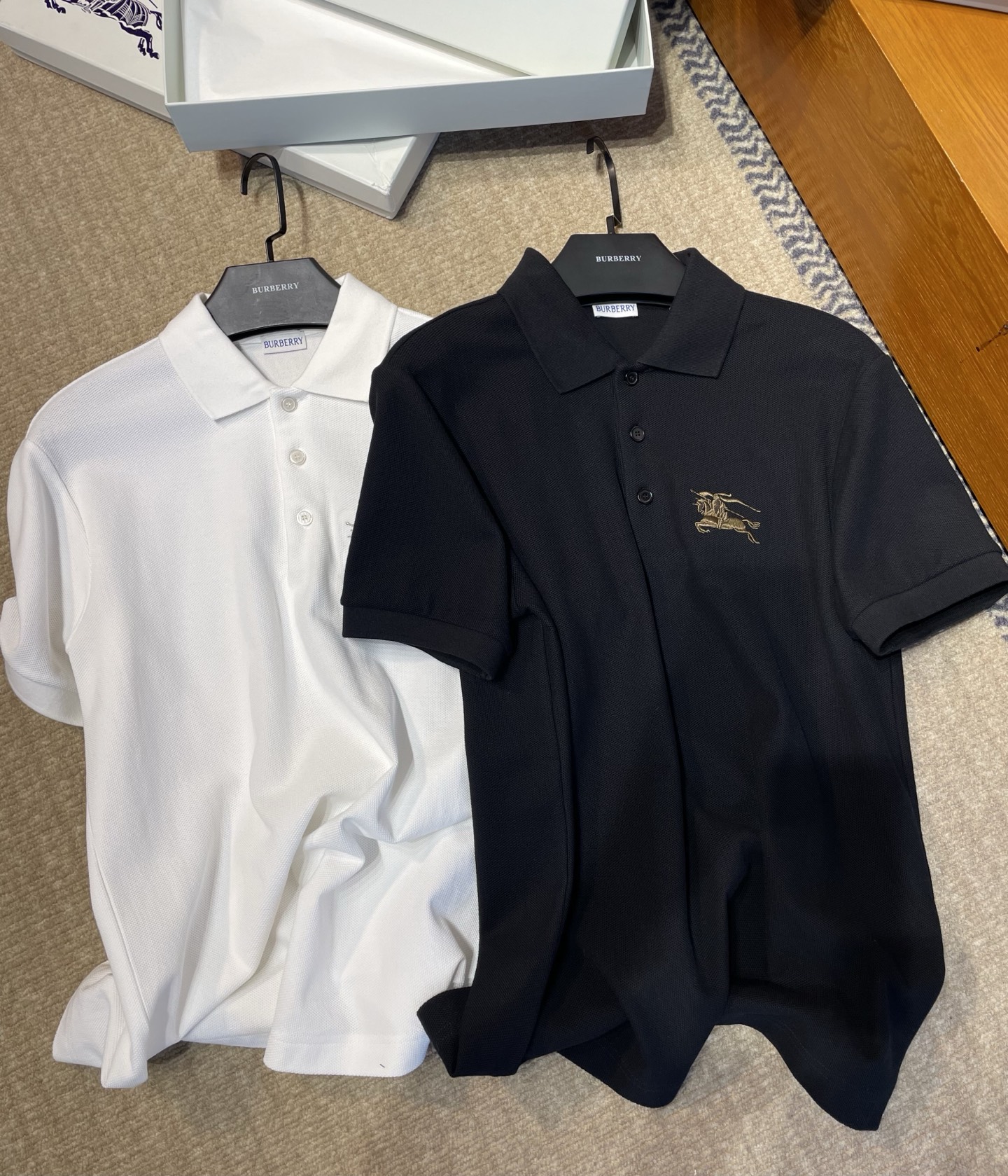 Burberry Men's Summer Solid Color Embroidered Logo Pearl Cotton Polo Neck Short Sleeve T-Shirt #77826