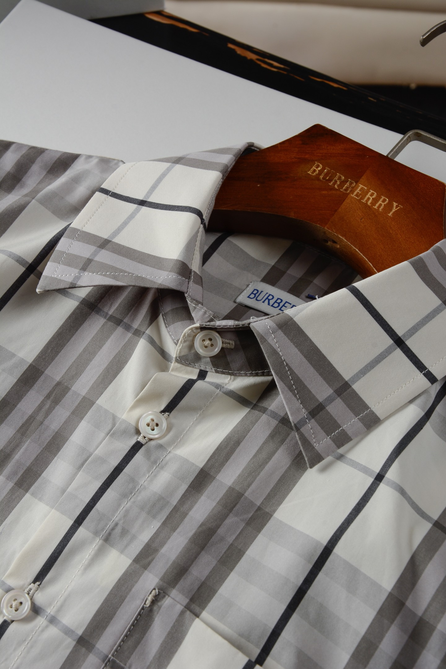 Burberry Men's Summer Checkered Print Single-Breasted Collar Short-Sleeved Shirt #77686