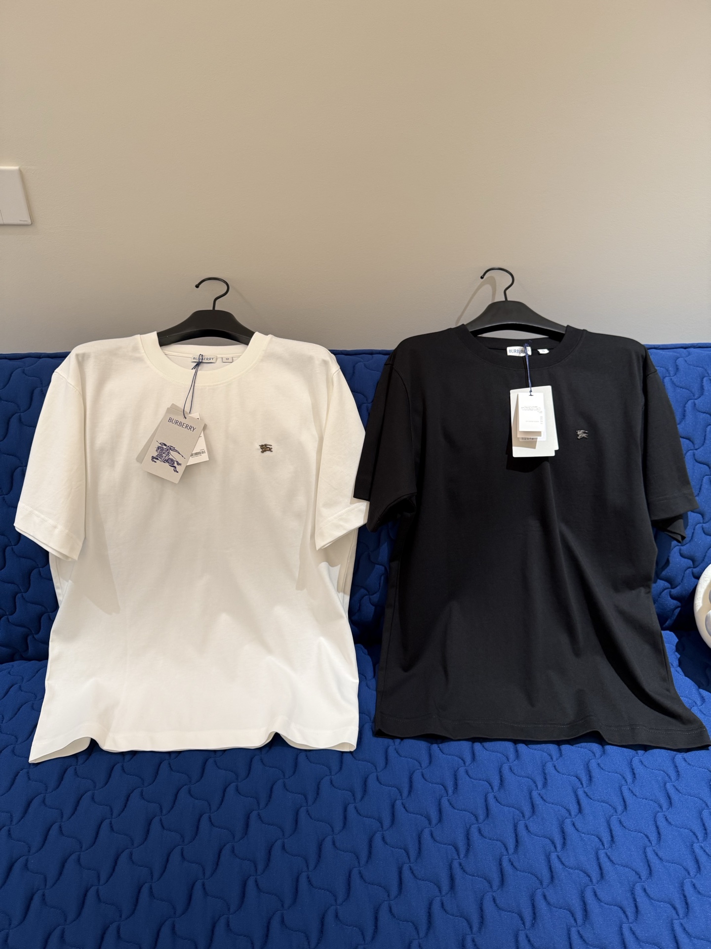 Burberry Men's Spring/Summer Solid Color Logo Cotton Loose Straight Short Sleeve T-Shirt #76327