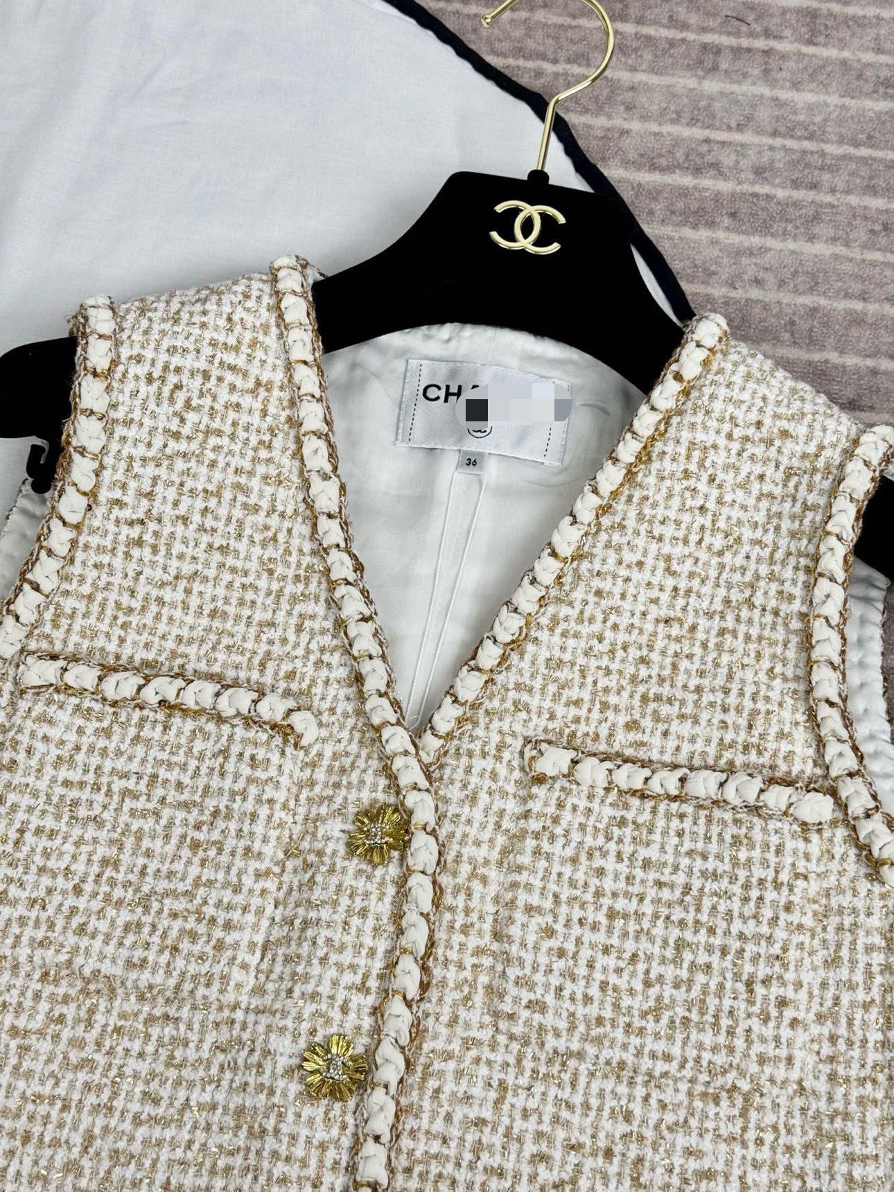 Chanel Top-quality Cardigan Version Short Skirt Cashmere Alpaca White Brown #375695