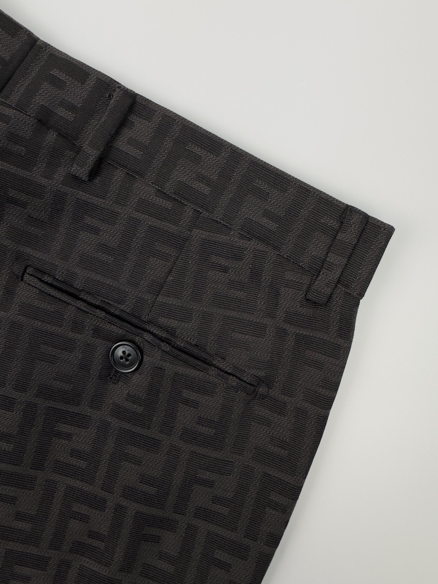 Fendi Men's Fall And Winter F Full Print Casual Suit Jacquard Lapel Single-breasted Jacket Straight Suit Pants Set #71558