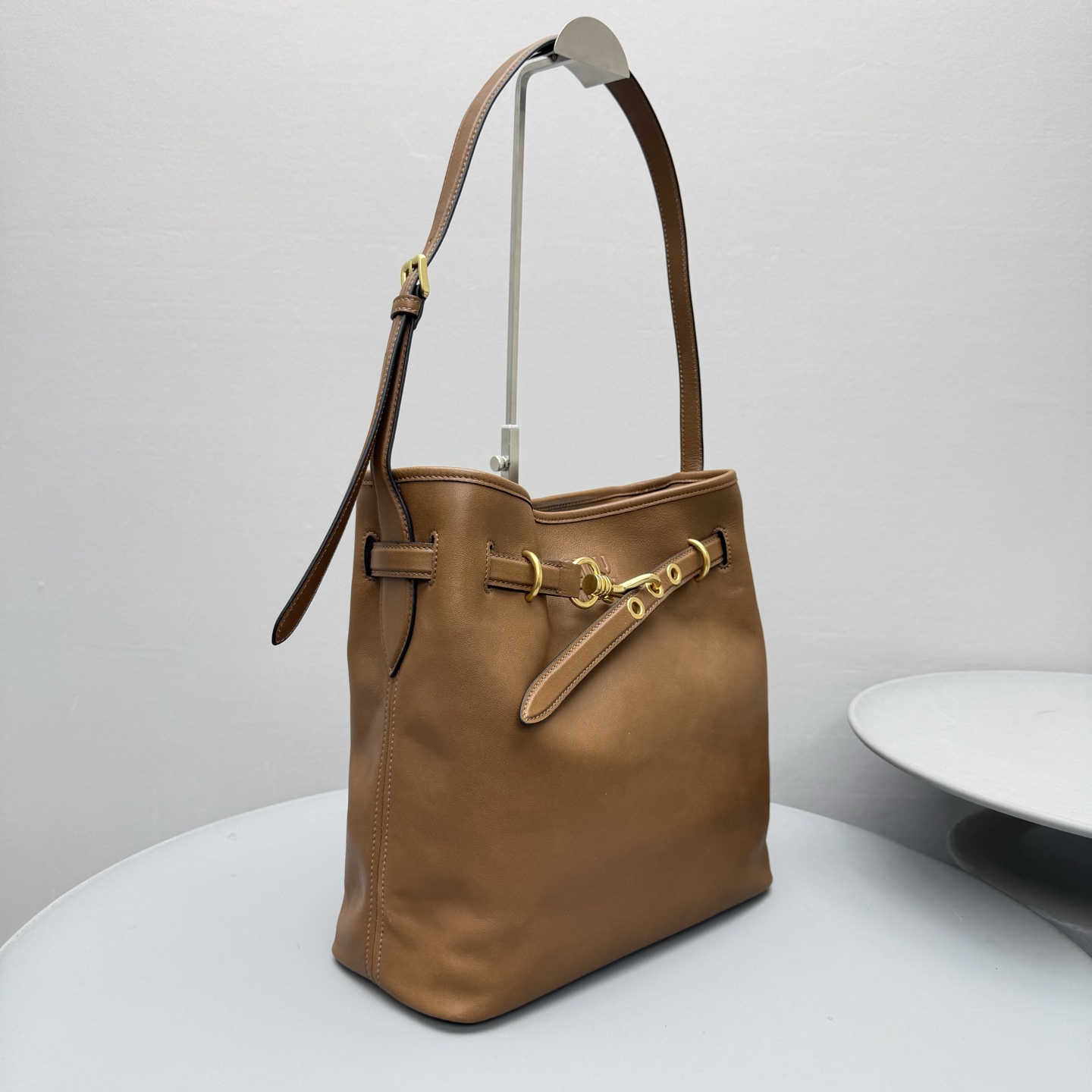 MiuMiu Ivy Gold Naplak Patent Leather Shoulder Crossbody Handbag #296964