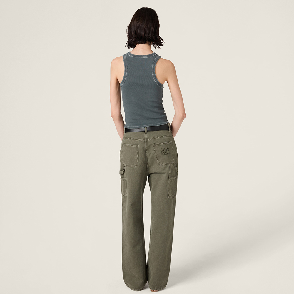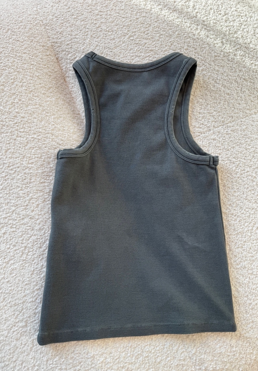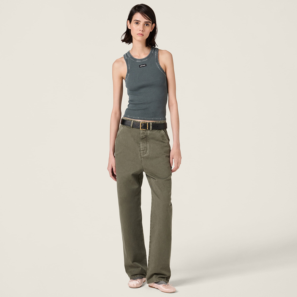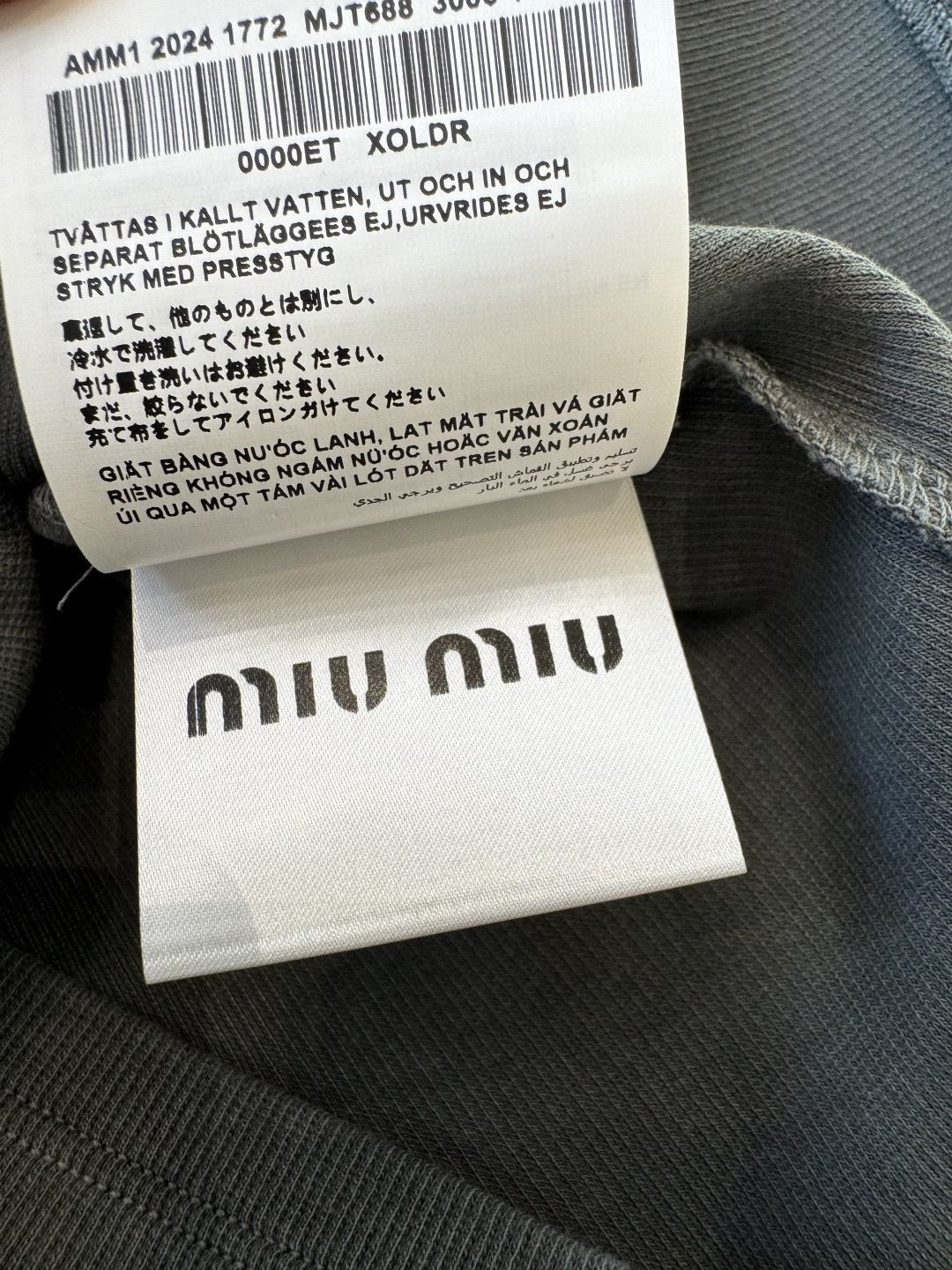 MIUMIU Women's Ribbed Knit Crew Neck Logo Patch Straight Tank Top #332263