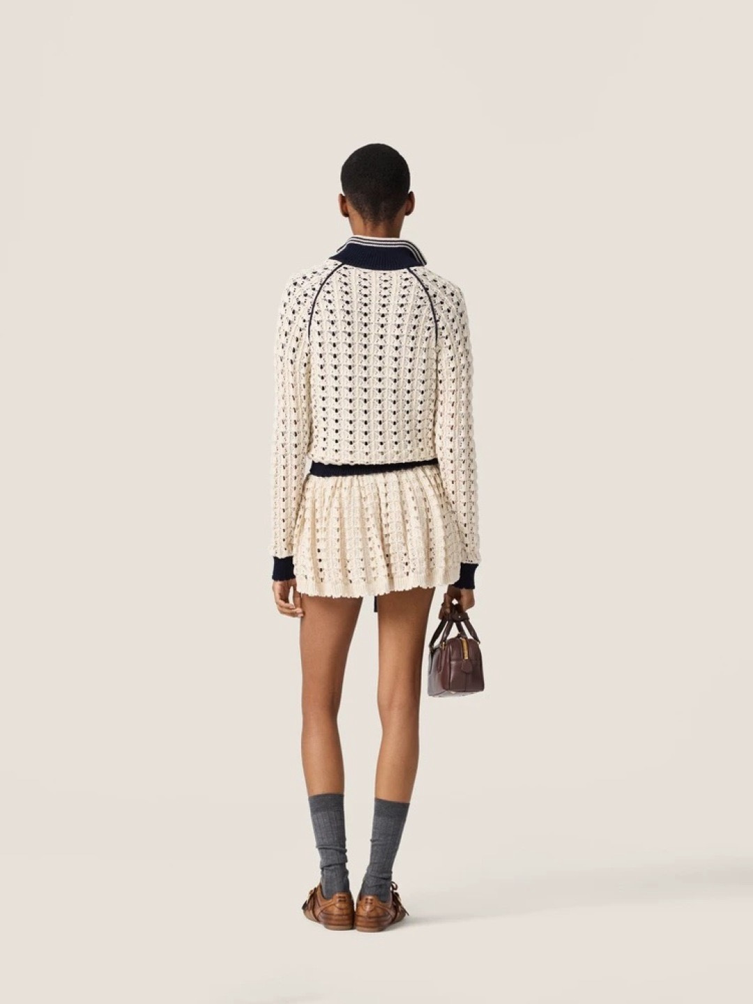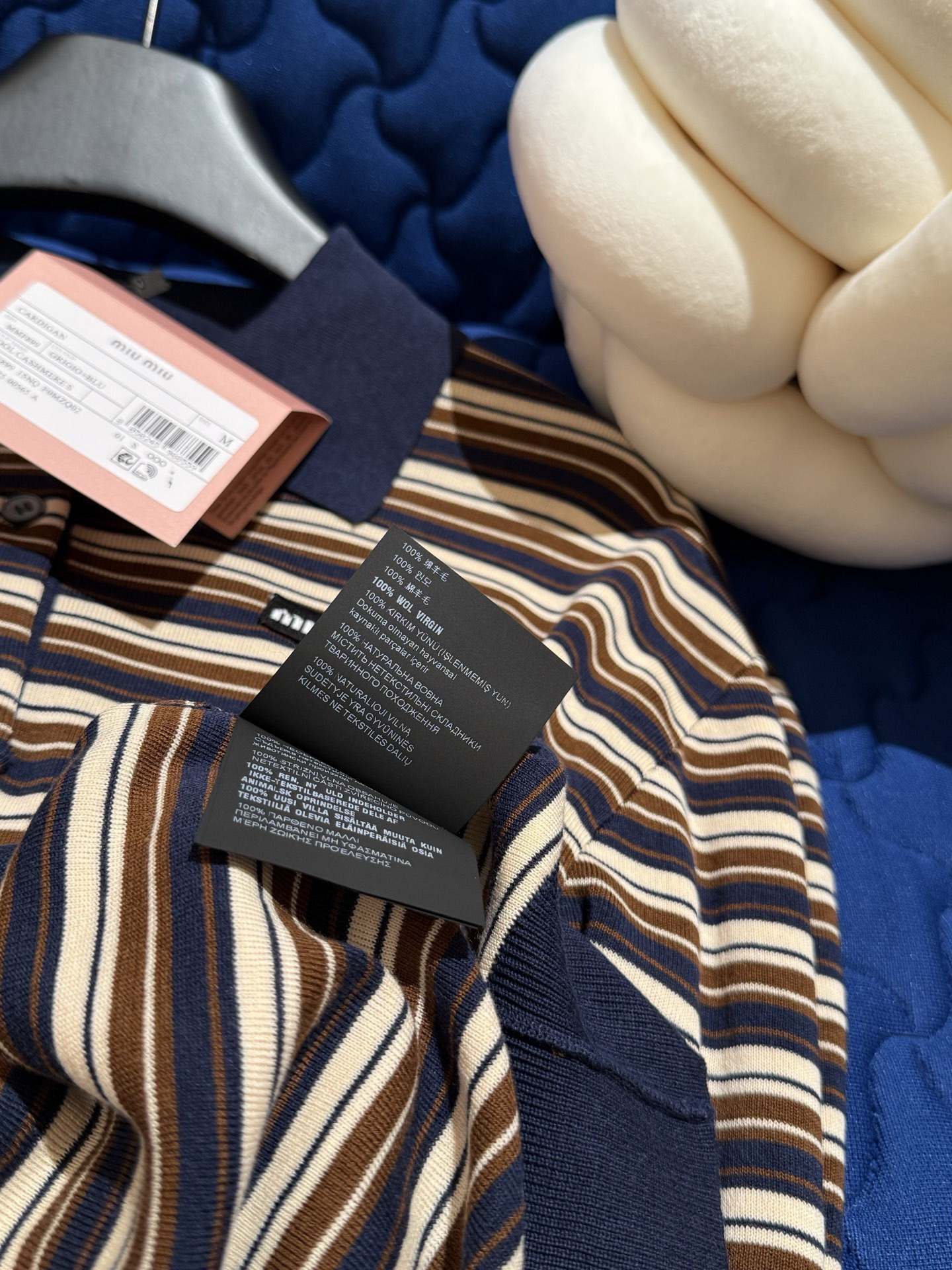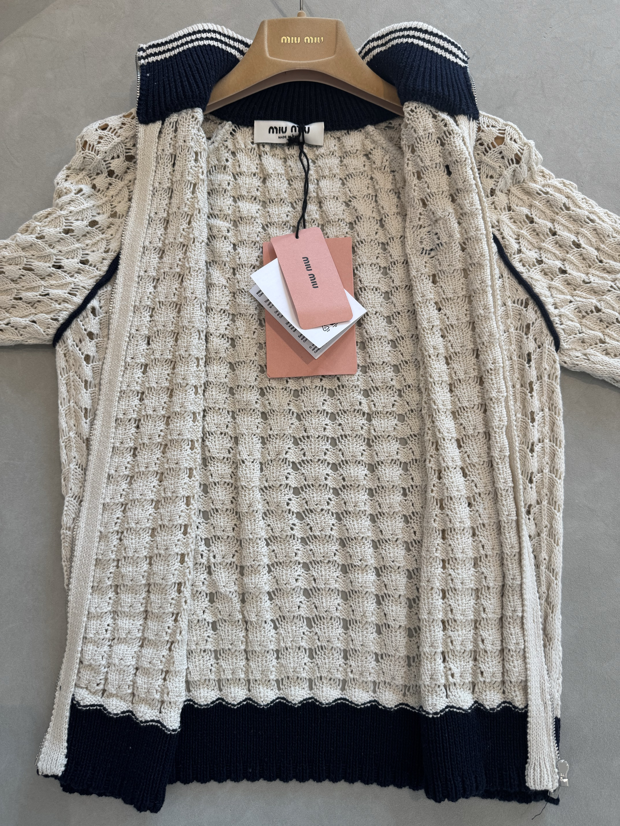 MiuMiu Women's Fall/Winter Fashionable Casual Collared Zipper Contrast-Trim Cardigan #79462