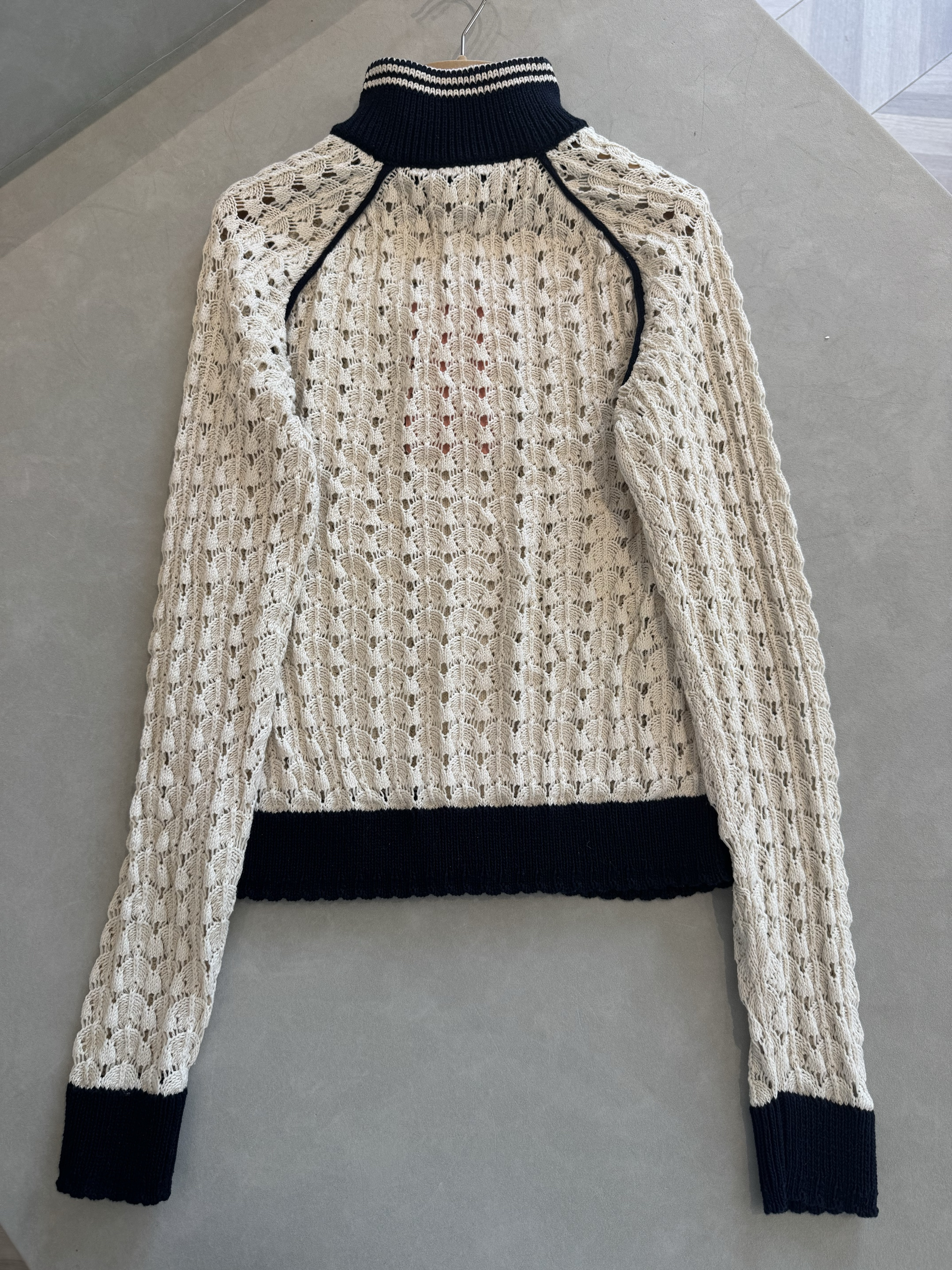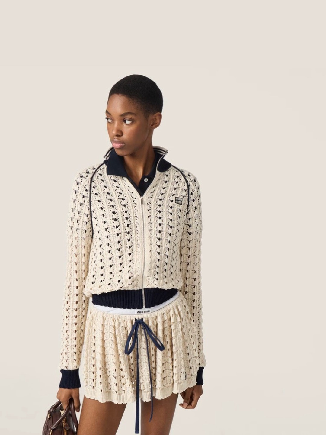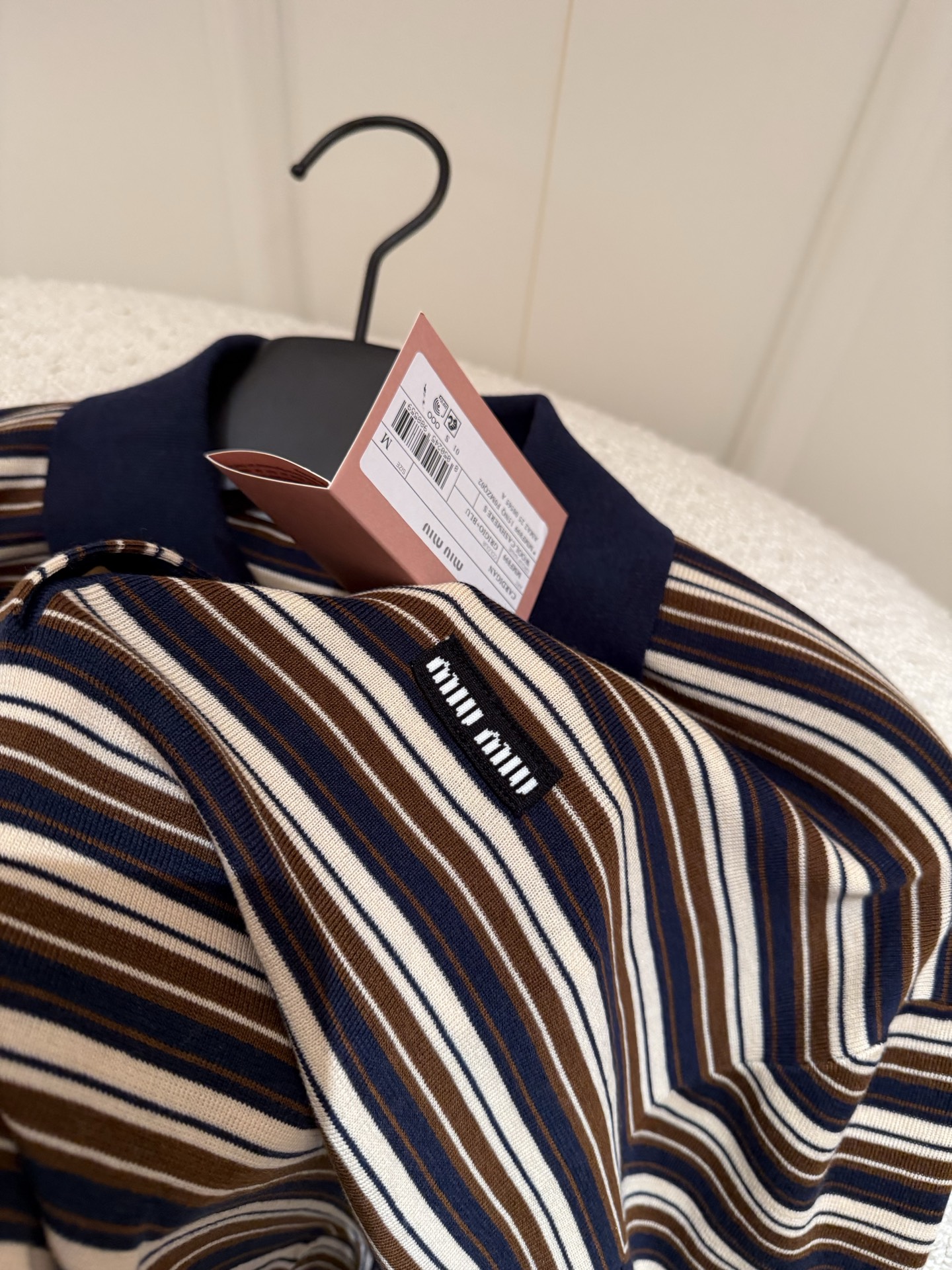 MiuMiu Women's Fall/Winter Fashionable Casual Collared Zipper Contrast-Trim Cardigan #79462