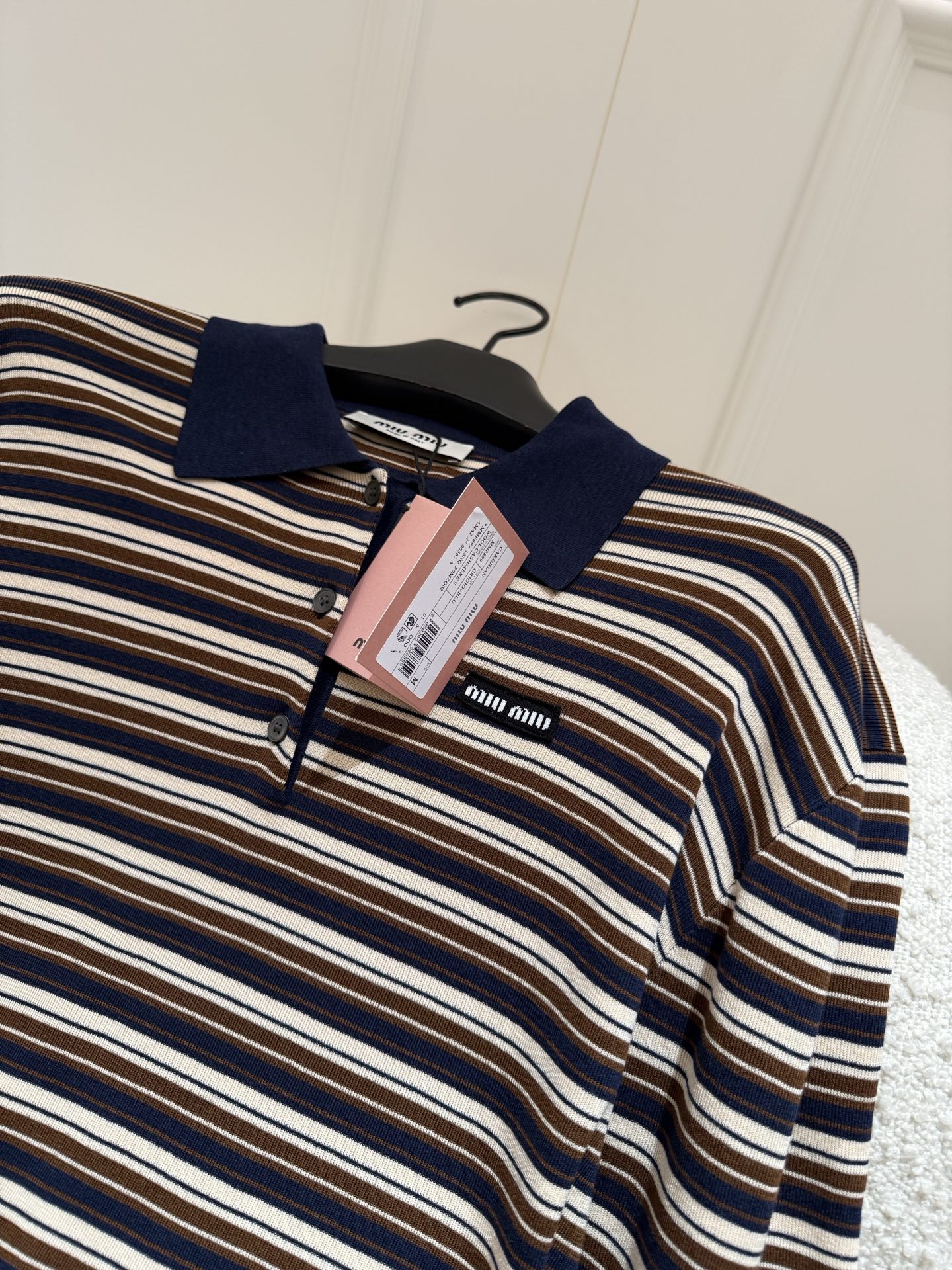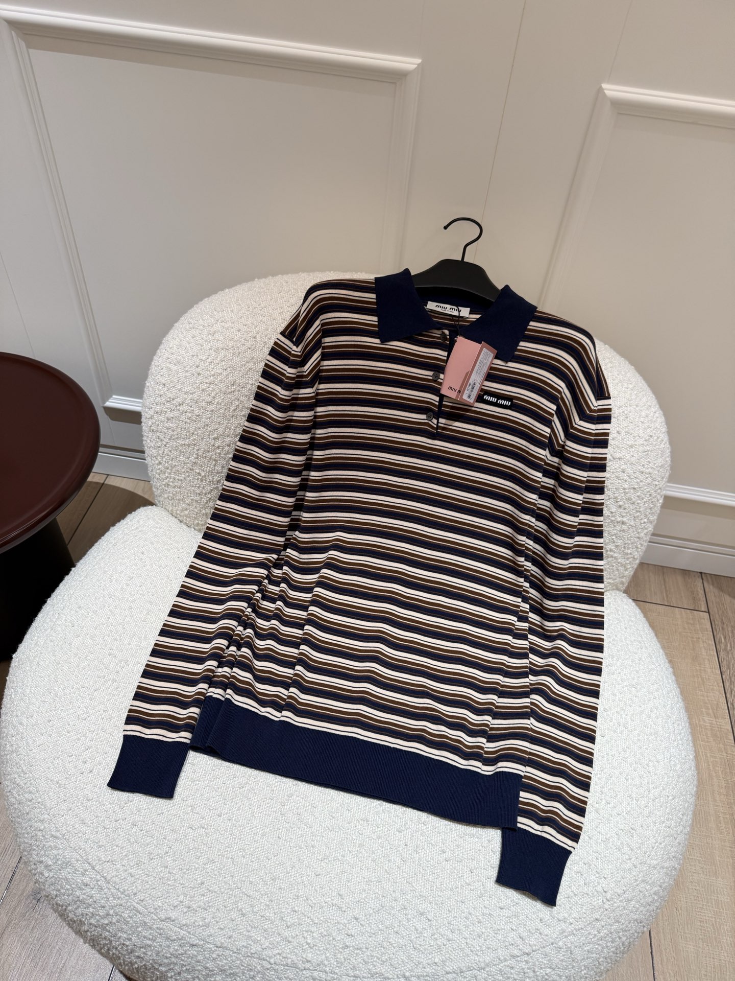 MiuMiu Women's Fashion Classic Half Zip Polo Shirt With V Neck Design And Pullover Sweater #79516
