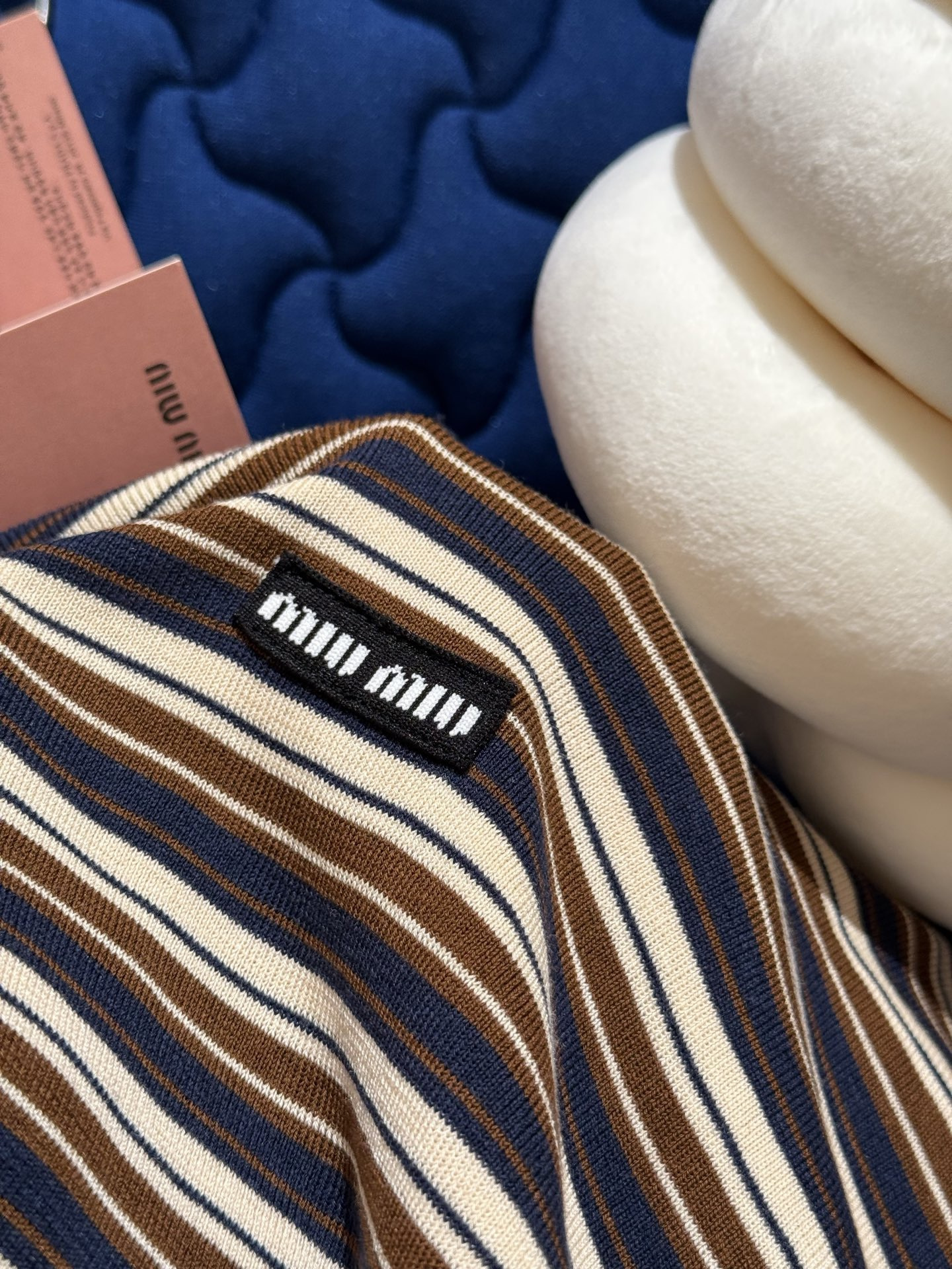MiuMiu Women's Spring/Fall Fashion Casual Crew Neck Sweater Set with Striped Fair Isle Jacquard Wool Knit Sweater #79425